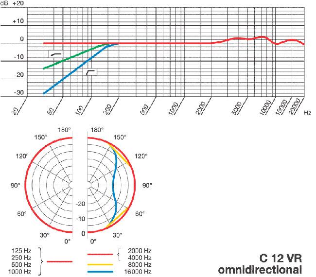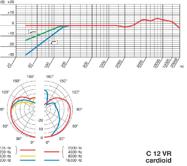 Niere, Kugel, Achter und 6 Zwischenstellungen 30 Hz - 20 kHz 10 mV/Pa (-40 dBV) Leerlauf-Übertragungsfaktor 128/138/148 dB (THD=3%) Grenzschalldruckpegel 32 db Äquivalentschalldruckpegel (CCIR 468-3) ...