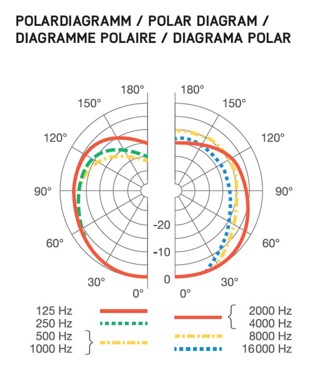 Richtcharakteristik: Niere Übertragungsbereich: 20 Hz - 17 kHz Empfindlichkeit: 1,8 mV/Pa Äquivalentschalldruckpegel: 73 dB -A Impedanz: 210 Ohm Lastimpedanz: 2.000 Ohm Anschluss: Symmetrischer XLR-St...