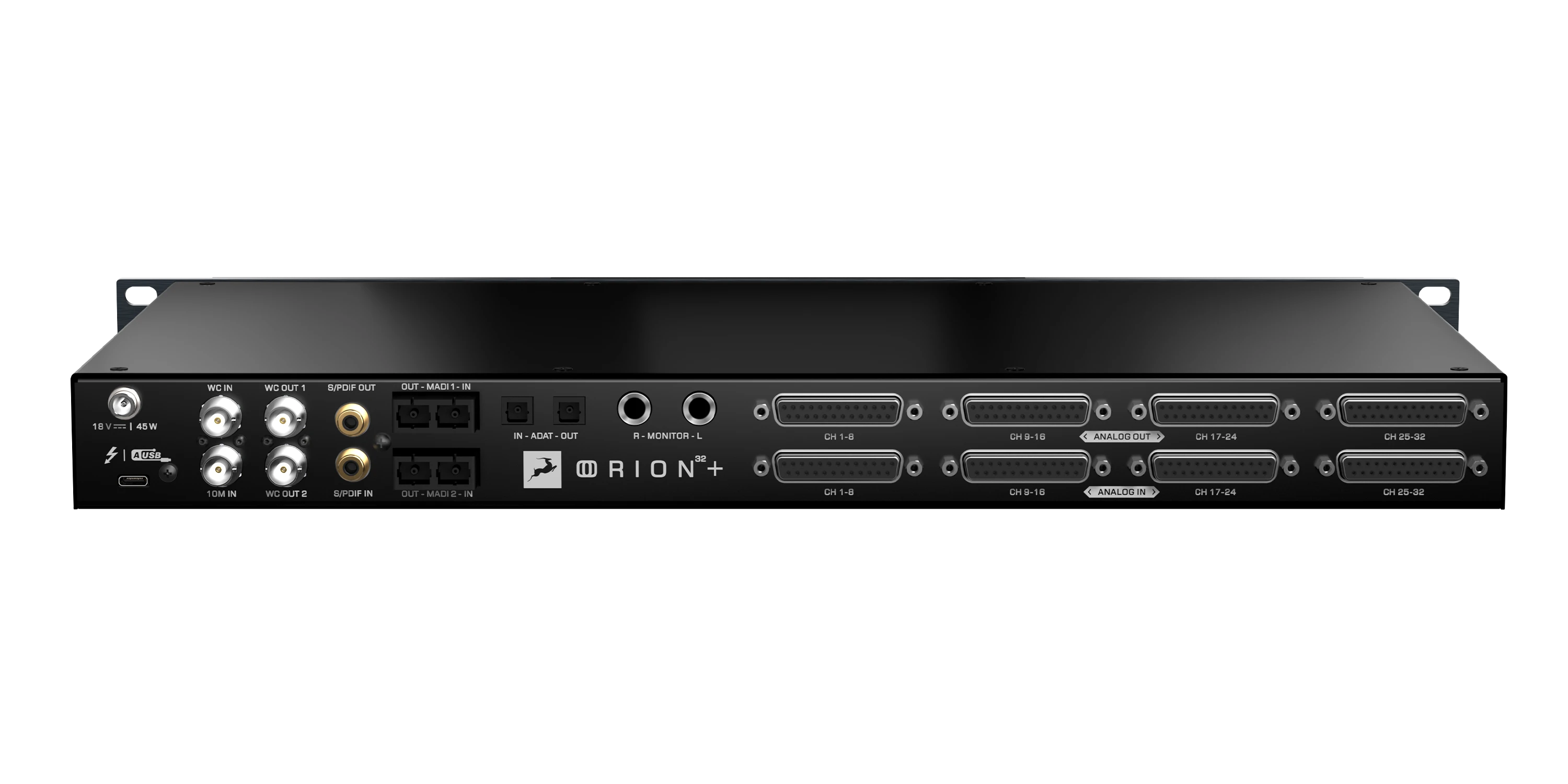Orion 32+ Gen4 can stream twice as many channels over Thunderbolt™ as its predecessor and has twice as much MADI connectivity, now at 128 channels for both. These significant upgrades allow for up to four units to be daisy-chained for 128 channels of AD/DA via a single computer connection. This makes the unit a top choice for large recordings, live sound applications, complex post-production setups and broadcast facilities. It’s a preferred companion to large mixing consoles, hardware effects processing chains, analog summing boxes, reel-to-reel setups, hardware synthesizers and pretty much anything else you can throw at it.