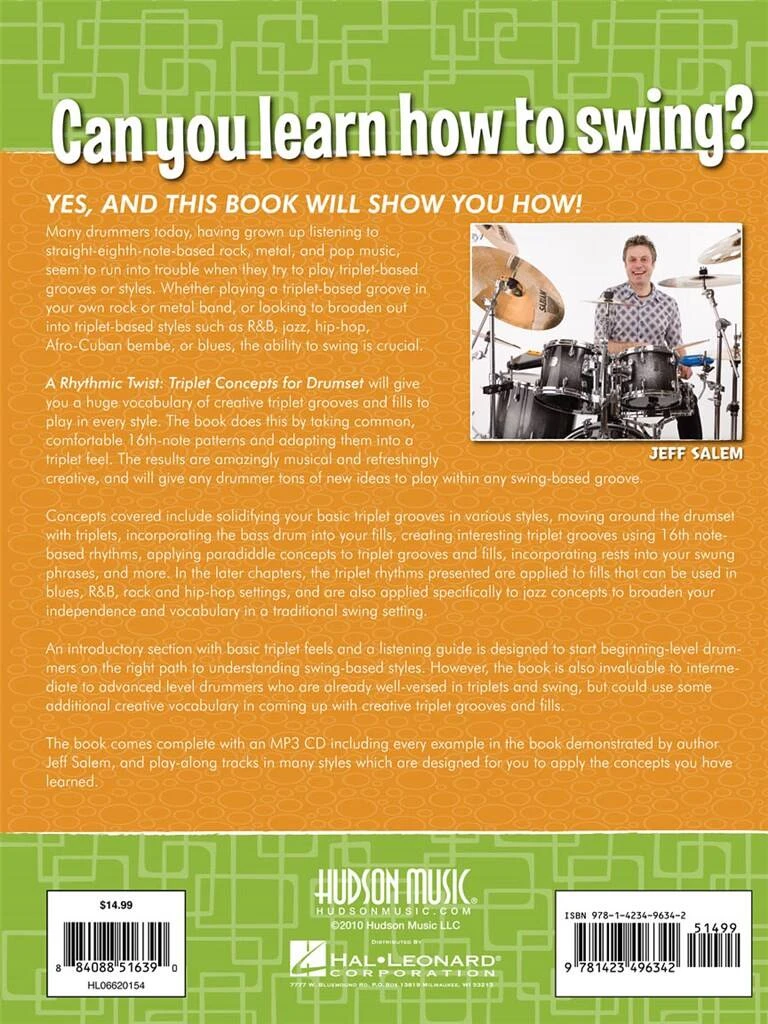 Can you learn how to swing? Yes, and this book will show you how, giving you a huge vocabulary of creative triplet grooves and fills to play in every style. The book does this by taking common, comfor...