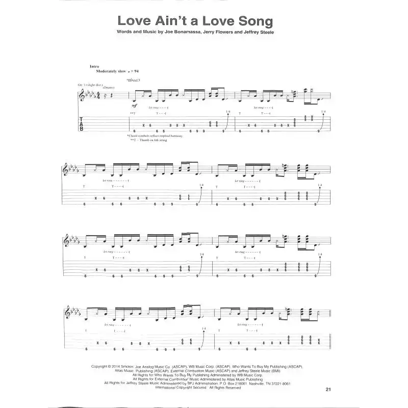 Detailauflistung AutorInnen Joe Bonamassa, Jerry Flowers, Jeffrey Steele, ua.