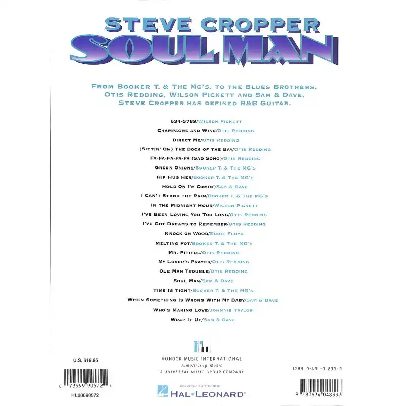 Von Booker T. und den MGs bis hin zu den Blues Brothers, Otis Redding und mehr hat Steve Cropper die R&B-Gitarre definiert. Dieses besondere Album enthält authentische Transkriptionen von zweiundzwanzig seiner größten und denkwürdigsten Songs.