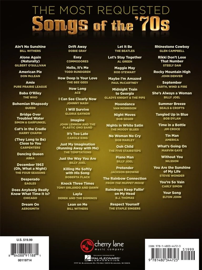 Mit Songs von: Bill Withers, Gilbet O'Sullivan, Don McLean, The Who, Queen, Simon & Garfunkel, Carpnters, Abba, The Four Seasons, Eagles, Chicago, Areosmith, Dobie Gray, Commodores, Todd Rungren,
