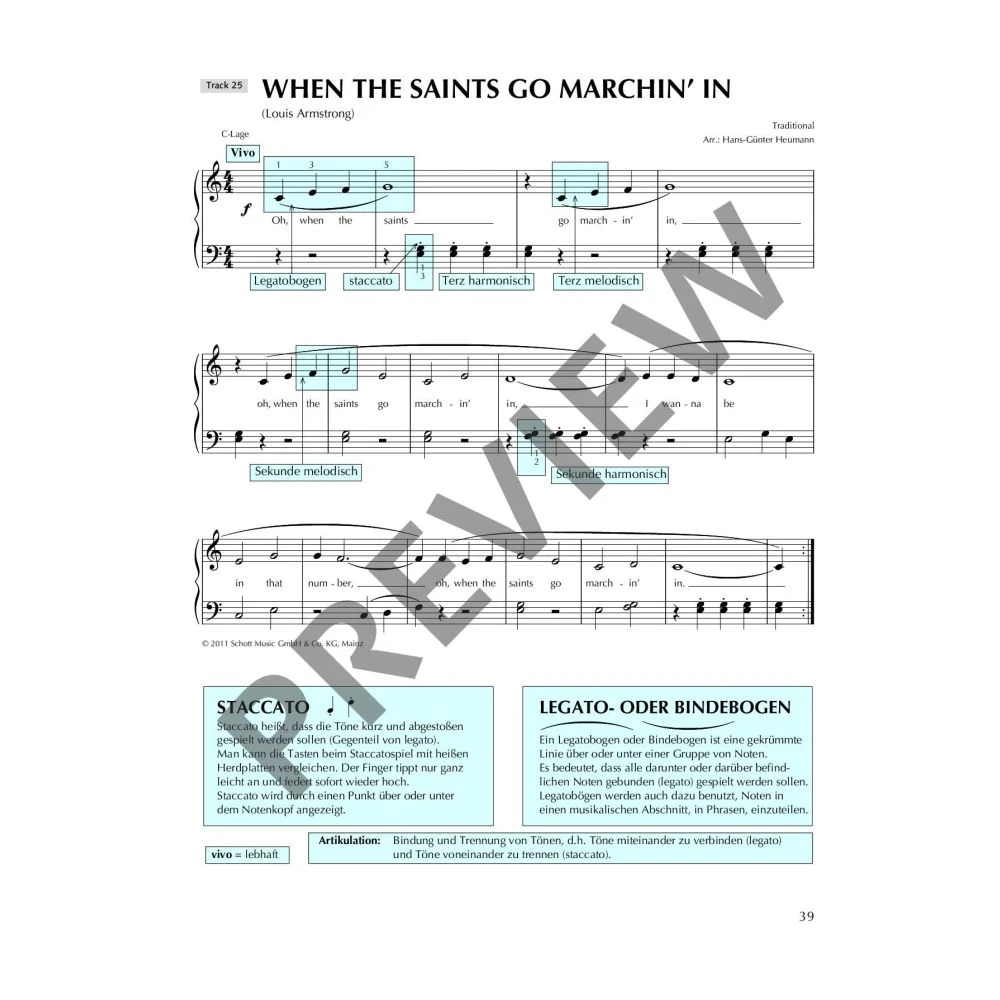 Sekunde, Terz, Staccato, Legatobogen, Artikulation