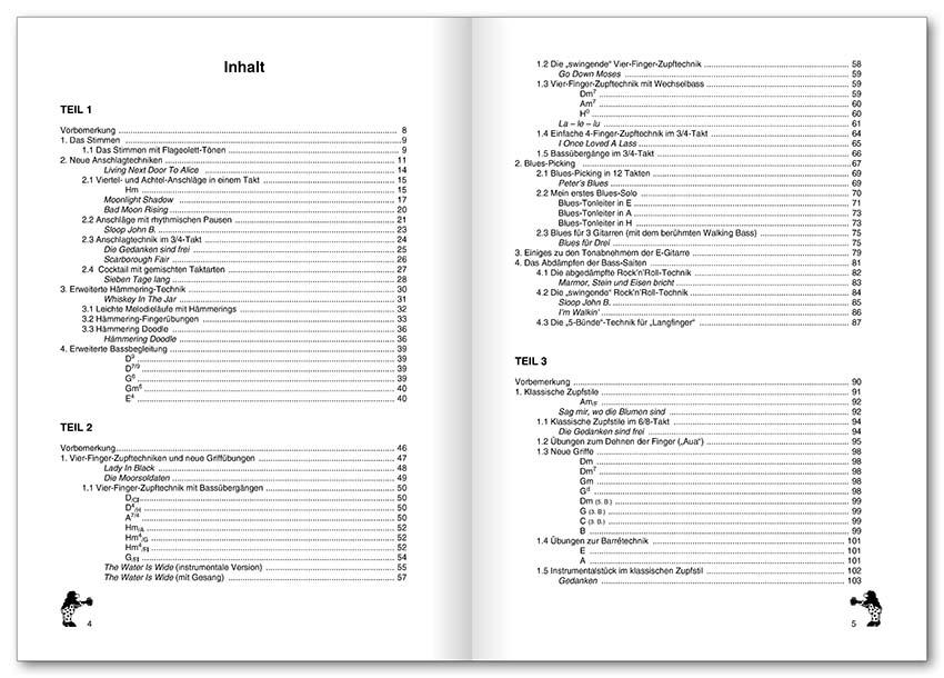Im dritten Teil entführt Peter Bursch dich dann in neue Zupfdimensionen. Du lernst Zupftechniken aus Rock- und Popmusik und wunderschöne einfache Instrumentalstücke. Fingerübungen bekannter Gitarristen, jede Menge neue Griffe und Pickings aus der Folk-, Country- und Popmusik.