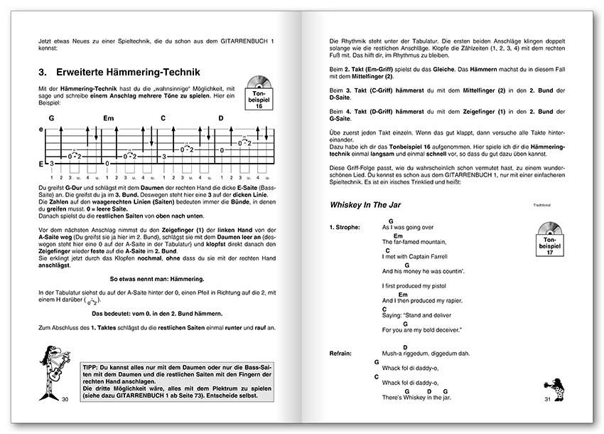 Hier ist die lang erwartete Überarbeitung des 2. Bands der erfolgreichsten Gitarrenschule Deutschlands! Du steigst ein mit neuen Anschlagtechniken, der erweiterten Bassbegleitung und natürlich vielen neuen Griffen. Im zweiten Teil lernst du Vier-Finger-Zupftechniken und Bassübergänge. Du spielst dein erstes Blues-Solo und erfährst einiges über die E-Gitarre und spezielle Spieltechniken wie die Rock’n’Roll-Technik und das Abdämpfen der Bass-Saiten.