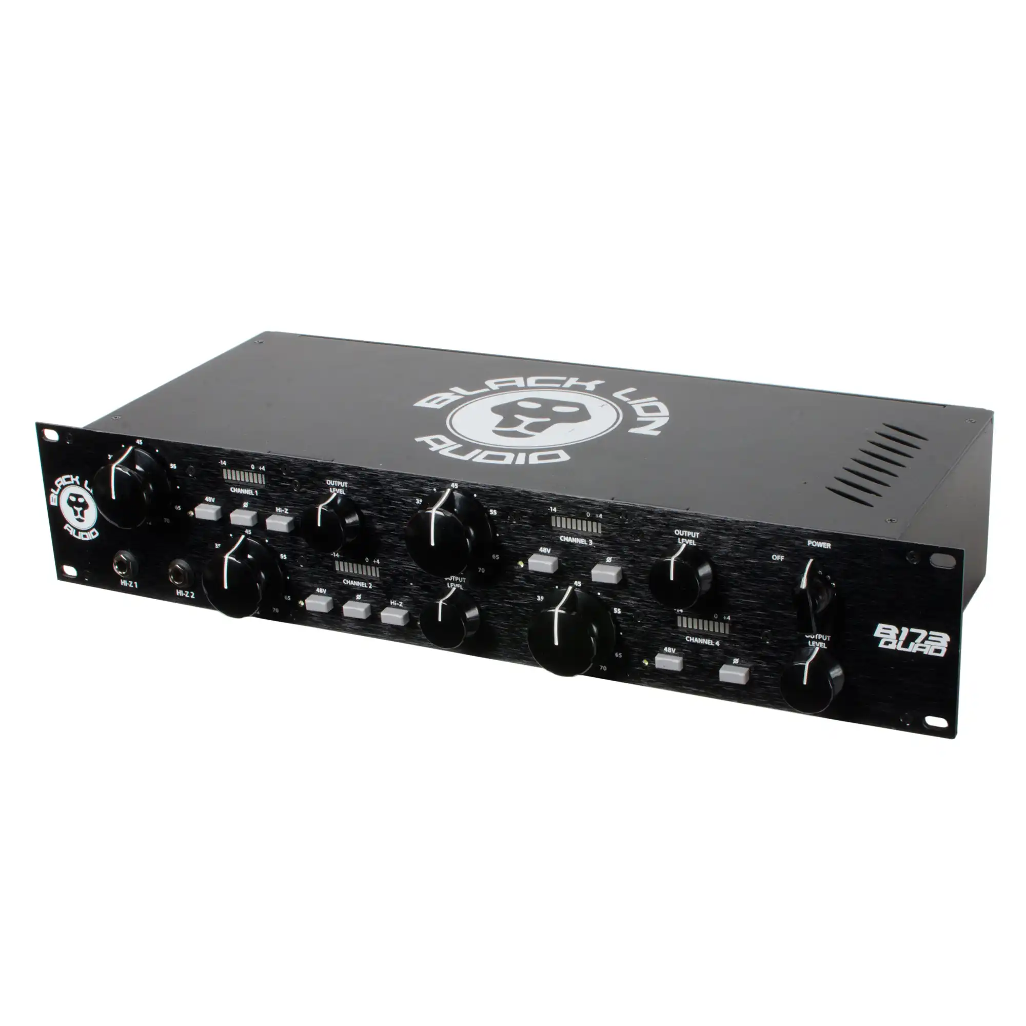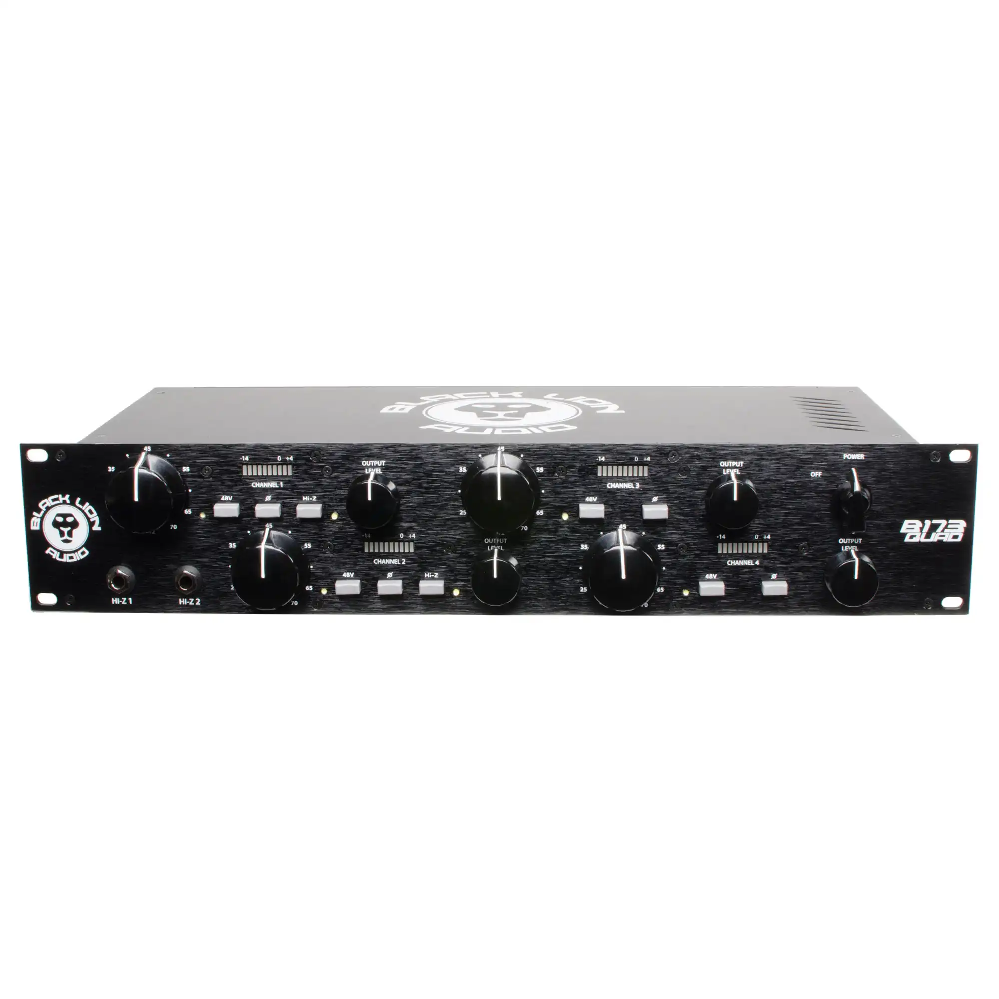 Der B173 Quad ist die 4-Kanal-Version unseres B173 Preamps und basiert im Wesentlichen auf dem klassischen Design des Neve 1073. Der B173 Quad ist ein "Class A", diskret aufgebauter Preamp mit single-ended Mikrofonverstärker und symmetrischer Ausgangsstufe. Ein 4-Kanal-Preamp mit Cinemac Ein- und Ausgangsübertragern, gerasterten Eingangs- und variablen Ausgangs-Potis, Phantomspeisung und Phasenumschaltung. Er liefert bis zu 70dB Gain, hat einen Hi-Z DI-Input der sich hervorragend eignet für Gitarren und Keyboards und kommt in einem stabilen 19"/2HE Gehäuse.