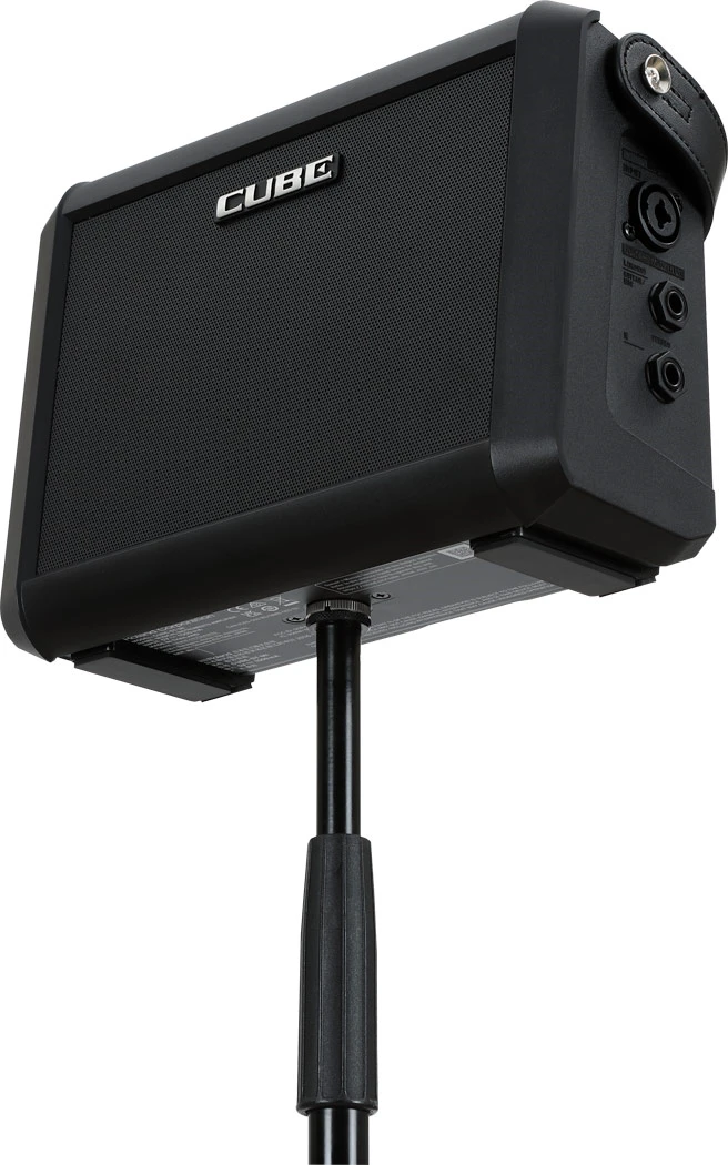 Der CUBE Street Mini erzeugt einen klaren, vollen Sound mit breiter Klangabstrahlung. Die Basis hierfür bilden der zweikanalige Verstärker mit ausreichend Headroom sowie die 2.1-Anordnung mit zwei Hochtönern und einem 5''-Lautsprecher. Weiterhin verfügt er über einen integrierten gewinkelten Ständer und eine Aufnahme für ein Mikrofonstativ, um in allen Situationen eine optimale Klangabdeckung zu ermöglichen.