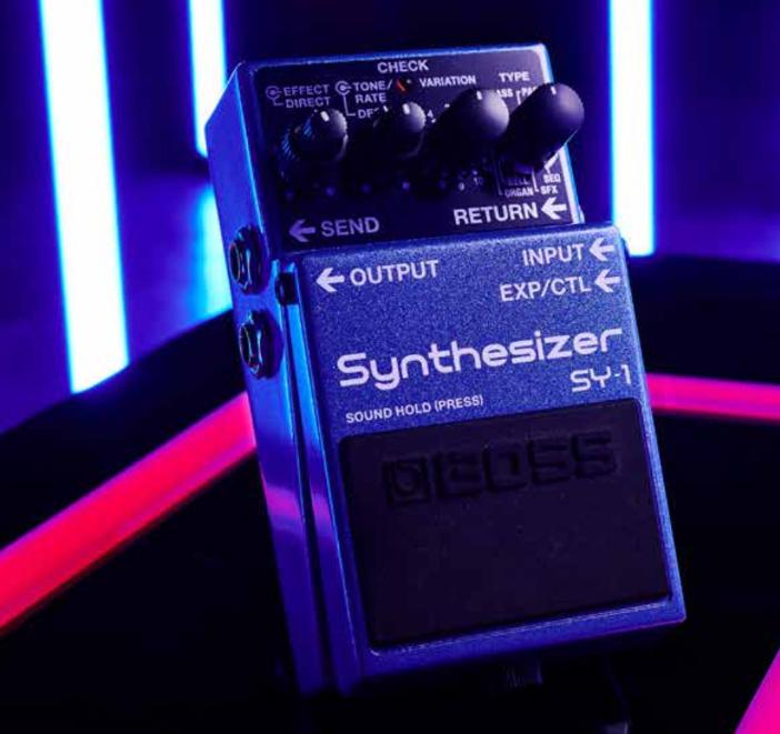 Mit dem SY-1 war es nie einfacher, dein kreatives Potenzial mit der legendären BOSS Gitarrensynthesizer-Technologie zu kombinieren. Der SY-1 ist ein außergewöhnlich ausdrucksstarkes Werkzeug mit 121 besonders reaktionsstarken Sounds im Gehäuse eines BOSS Kompaktpedals, das sich problemlos in jedes Setup eingliedert. Und das Beste: Er lässt sich so einfach wie eine herkömmliche Stompbox bedienen. Auf diese Weise brauchst du kein erfahrener Synthesizer-Programmierer zu sein, um deine Musik in komplett neue Soundwelten zu führen.Ausdrucksstarke Synthesizer-Sounds ohne ProgrammierungDer SY-1 verwandelt jede Gitarre und jeden Bass in einen vielseitigen, inspirierenden und jederzeit spielbereiten Synthesizer mit höchstem Unterhaltungspotenzial. Auf Basis fortschrittlicher Technologie, die ursprünglich für den SY-300 entwickelt wurde, bietet dieses coole Pedal eine enorme Auswahl an Synthesizer-Sounds im Analogstil und benötigt trotzdem nur minimalen Platz auf deinem Board. Darüber hinaus sind alle Sounds polyphon ausgelegt, so dass du sowohl Einzelnoten als auch Akkorde spielen kannst.Plug-and-Play ohne LatenzDer SY-1 lässt sich über ein herkömmliches 6,3 mm Klinkenkabel mit jeder Gitarre und jedem Bass verbinden und ist sofort spielbereit. Dank des Custom-DSP und modernster BOSS-Innovationen ermöglicht der SY-1 eine latenzfreie Performance, die sich wie eine natürliche Erweiterung deines Instruments anfühlt. Auf diese Weise kannst du unbeschwert spielen, ohne deine Spieltechnik anzupassen.Ein ganzes Universum an Synthesizer-Sounds Mit seinen 121 Sounds in elf Kategorien bietet der SY-1 eine enorme Vielfalt an Synthesizer-Farben – spielbar auf deinem Griffbrett. Zur Verfügung stehen ausdrucksstarke Leads, schwingende Pads, gelayerte Orgeln, massive Bässe und mehr sowie eine Vielzahl rhythmischer Synthesizer-Patterns, die zu außergewöhnlichen Jams einladen. Zudem kannst du über die unmittelbar zugänglichen Tone/Rate- und Depth-Regler jeden Sound ganz nach deinen Vorstellungen anpassen sowie bei diversen Sounds sogar die Tonhöhe ändern. In jedem Rig zuhauseDank des BOSS Compact-Standardformats fügt sich der SY-1 problemlos in jede serielle Pedalkette ein. Mit seinem Send/Return-Loop und den fest zugeordneten Mix-Reglern kannst du zudem ein oder mehrere Pedale parallel in deinen Signalweg einfügen und mit deinen Synthesizer-Sounds überblenden. So kannst du zum Beispiel Drive-Pedale in deinen Loop patchen und das kombinierte Ausgangssignal über nachgeschaltete Modulations-, Delay- und Reverb-Pedale weiterbearbeiten. Darüber hinaus lässt sich der Send auch als Direct Out verwenden, um Synthesizer- und Gitarrensounds auf unterschiedliche Ziele zu routen. Erweitere deine Performances um Echtzeit-SteuerungDer SY-1 bietet zahlreiche Wege, um deine Synthesizer-Performances noch dynamischer und ausdrucksstärker zu gestalten. Indem du den Pedalschalter gedrückt hältst, wird der zuletzt gespielte Synthesizer-Sound gehalten, während du mit deinem normalen Gitarrensound darüber spielst. Du kannst auch einen externen Fußschalter anschließen, um Tempi und Oktav-Shift-Effekte zu steuern, sowie ein Expression-Pedal hinzufügen, um den Tone/Rate-Regler kontinuierlich zu steuern. SY-1 Sound-Kategorien• LEAD 1/2—Eine breite Palette Solo-Sounds – geeignet für Single-Notes• PAD—Füllige Sounds – von mehrschichtigen Pads bis zur Synthesizer-Brass-Section – die sich perfekt für das Akkordspiel eignen• BASS—Fette Synthesizer-Bässe inklusive Filter- und Sub-Oktav-Varianten• STR—Klassisch-analoge Synthesizer-Streicher inklusive Layer- und Sweep-Sounds• ORGAN—Eine große Auswahl an Orgel-Sounds, zum Teil mit Rotary-Modulationseffekt• BELL—Perkussive Synthesizer-Sounds mit metallischem Resonanzverhalten• SFX 1/2—Eine Vielzahl von Synthesizer-Soundeffekten, darunter explosive One-Shot-Sounds, lebhafte Pitch-/Filter-Sounds und mehr• SEQ 1/2—Pulsierende Sounds mit rhythmischen Veränderungen der Tonhöhe oder Filtereinstellungen