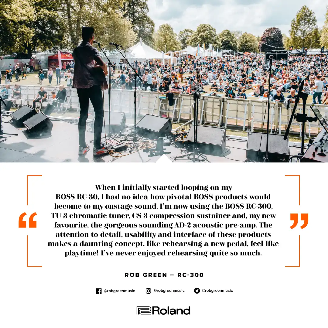 Detailauflistung Stromversorgung von 7 weiteren Effektpedalen durch DC OUT-Buchse + optionales BOSS PCS-20a Verteilerkabel + BOSS