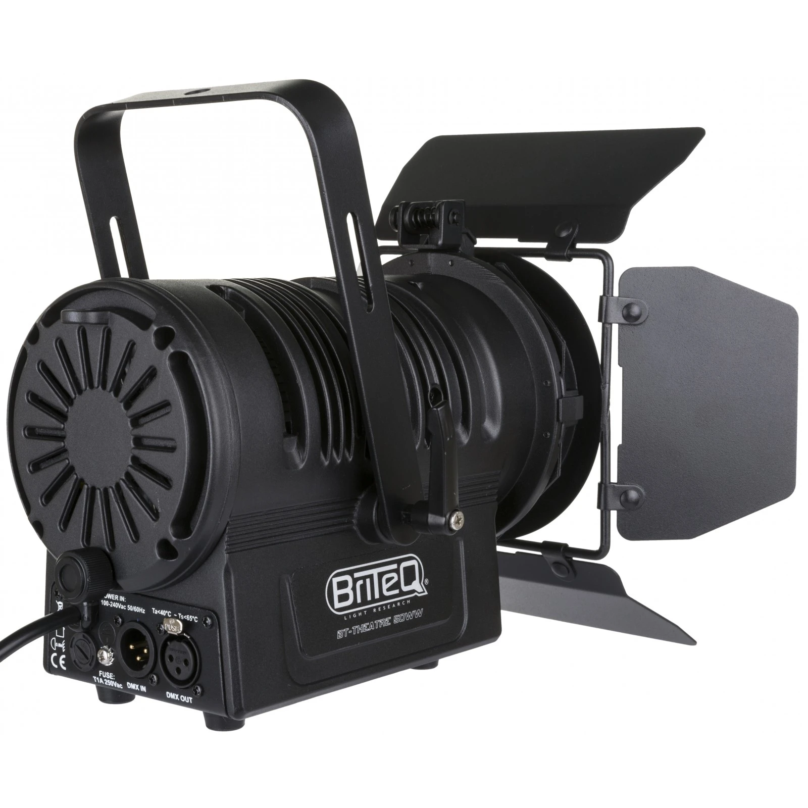 3pin DMX Eingänge/Ausgänge und festes 1m Netzkabel mit Standard-Netzstecker (CEE 7/7)