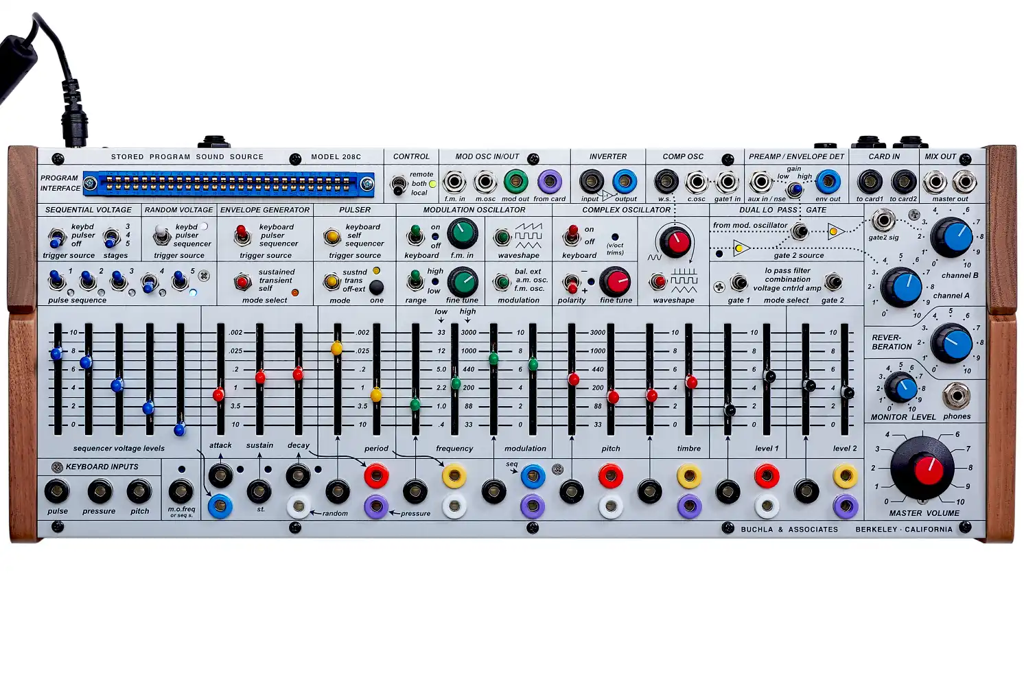 1 x 3,5 mm Gate-Eingang (wird in Buchla-Tastaturimpuls mit Sustain umgewandelt)