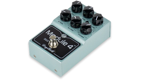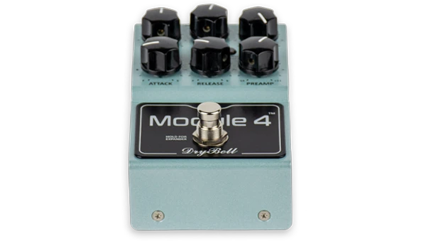 Output - Regelt die Ausgangslautstärke (Make-up Gain) des Kompressors. Dank der hohen internen Versorgungsspannung dient er auch als verzerrungsfreier Clean Boost mit hohem Headroom.