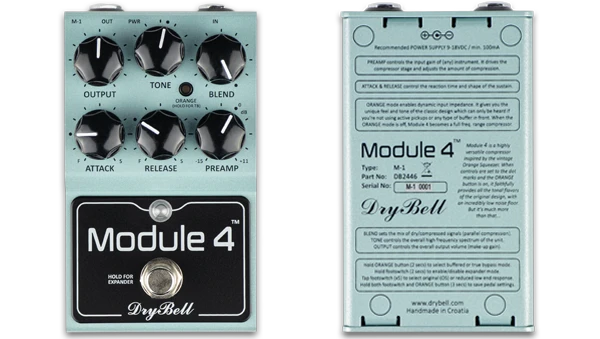 ORANGE-Taster - Aktiviert/deaktiviert den ORANGE-Modus. Wenn der ORANGE-Modus ausgeschaltet ist, wird das Modul 4 zu einem "Full Frequency Range"-Kompressor