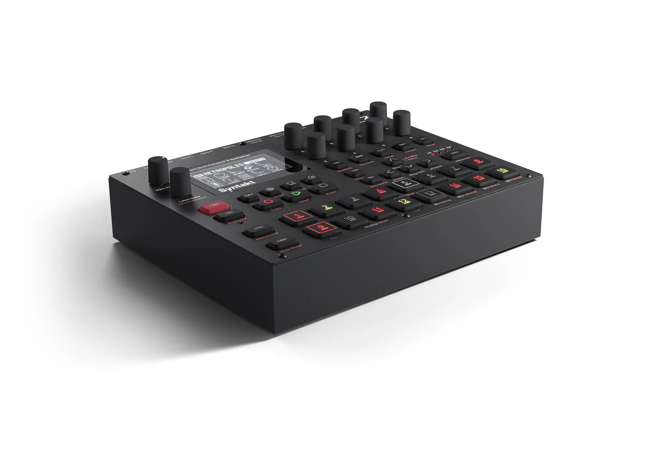 Syntakt ist ein Drum-Spezialist mit vielen perkussiven Möglichkeiten, aber seine 12 Spuren können auch für Melodie-, Harmonie- und Bass-Sounds verwendet werden. Erleben Sie mit über 35 analogen und digitalen Maschinen epische Klänge aus der Vergangenheit und rufen Sie andere aus der Zukunft ins Leben. Für die Uneingeweihten: Maschinen im Elektron-Universum sind spezielle Klangerzeuger - Synthesizer in Ihrem Synthesizer.