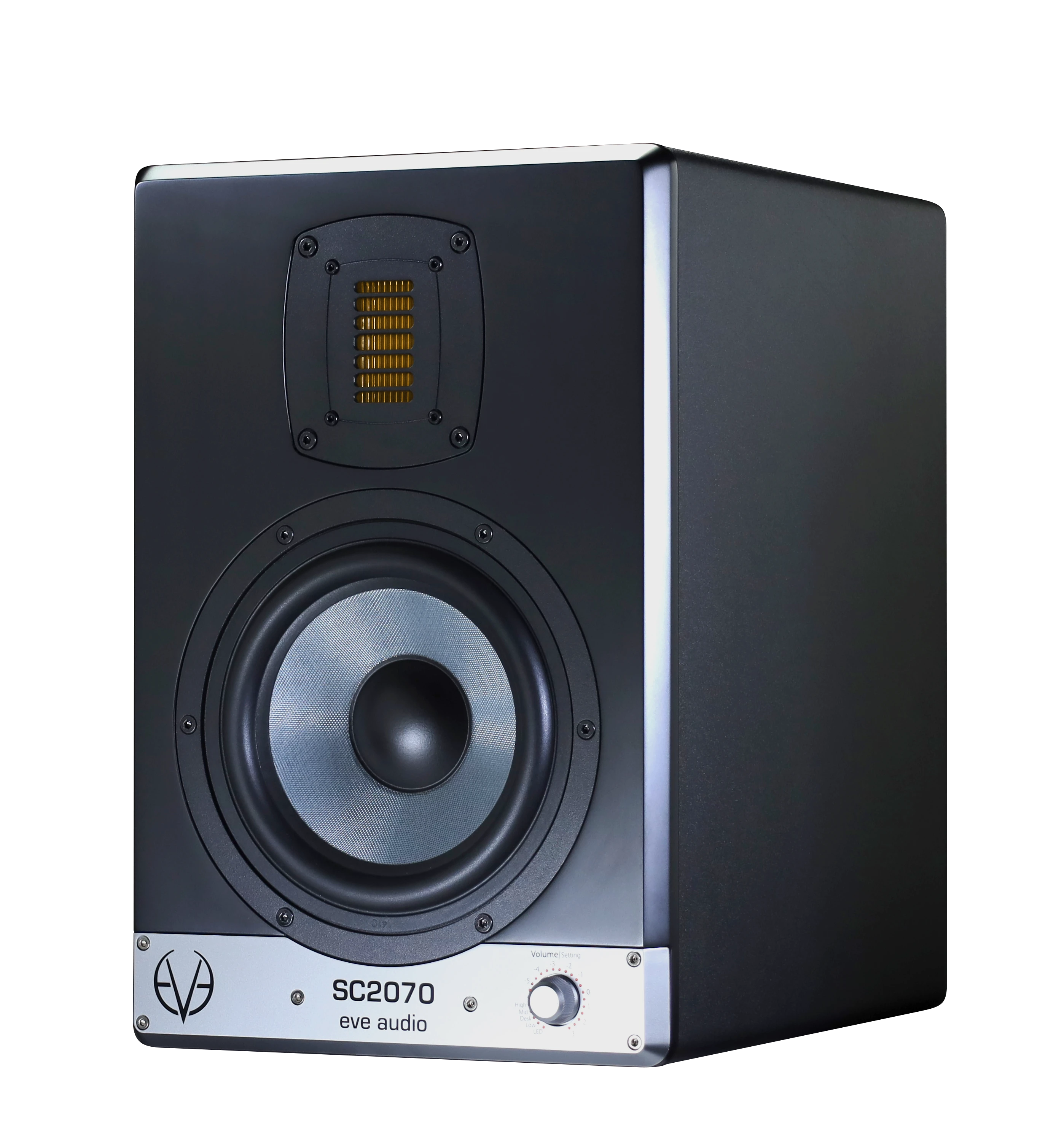 Lautstärke und Filter zur Raumanpassung lassen sich über den SMART-knob regeln, der ein Markenzeichen aller EVE Audio Studiomonitore ist. Vielfältige Anpassungen an die jeweilige Raumsituation können auf denkbar einfachste Art und Weise an der Vorderseite des Studiomonitors vorgenommen werden. Durch die Kombination dieser Technologien bietet die SC2070 eine für ihre kompakte Größe einzigartige Performance bei maximaler Impulstreue.