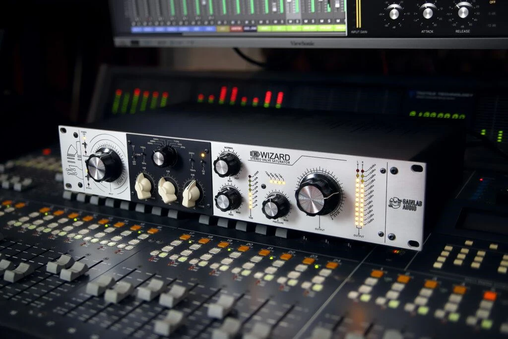 Dieses Gerät ist der GLA-TS1 Wizard Stereo Tube Saturator. Mit den Eingangs- und Ausgangsreglern lässt sich der Sättigungsgrad leicht an den Charakter des Ausgangsmaterials und den persönlichen Geschmack anpassen, wobei eine weitere Verfeinerung über die Feed-Funktion möglich ist. Mit der Feed-Funktion kann der Clean-Signalanteil des Ausgangssignals unterdrückt werden, so dass sich der gewünschte Sättigungsgrad noch besser einstellen lässt.