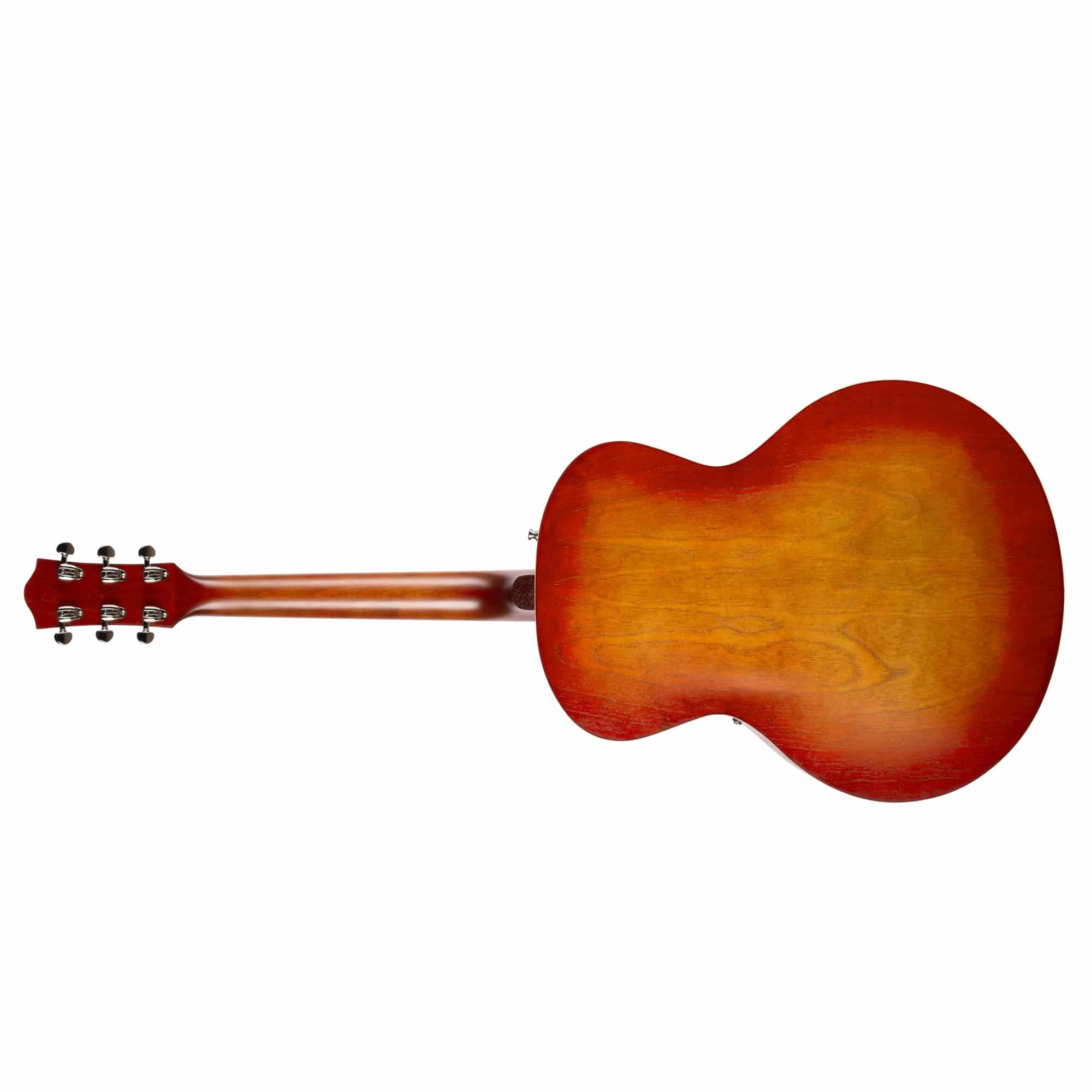 Der Jumbo-Korpus bietet mit seiner kanadischen Wild Cherry Archtop Decke, Boden und Zargen und dem retro-inspirierten Custom-Polish-Finish jede Menge Wucht. Zu den weiteren Merkmalen gehören ein Palisander-Griffbrett, ein Silver Leaf Maple-Hals, eine Graphtech Adjustable Tusq Bridge (Basis) mit T.O.M. With Roller Saddles und ein Trapez-Saitenhalter sowie eine individuell gravierte Kopfplatte. Der Hals mit einer Mensur von 24,84“ bietet ein außergewöhnlich komfortables Spielgefühl und sorgt für einen satten Sound und ein tolles Aussehen.