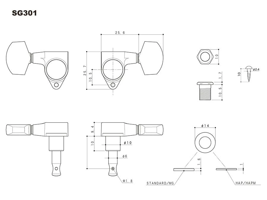 Detailauflistung Gotoh MG-T Traditional Locking System mit einer Rändelschraube auf der Mechanikrückseite