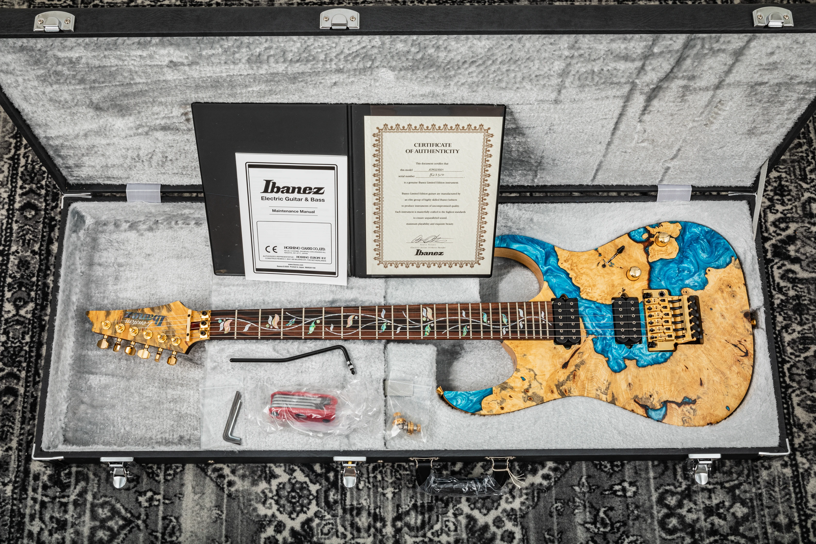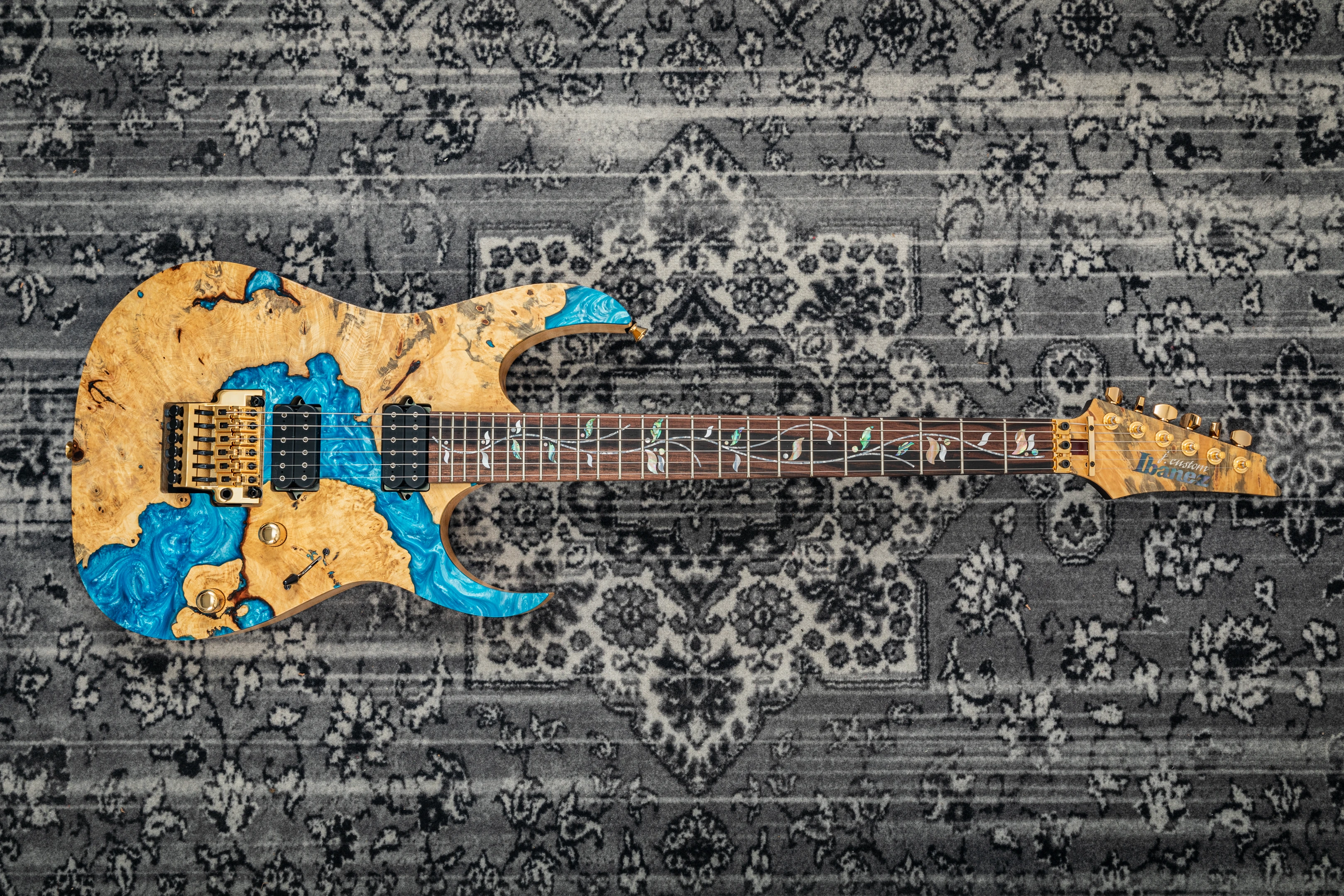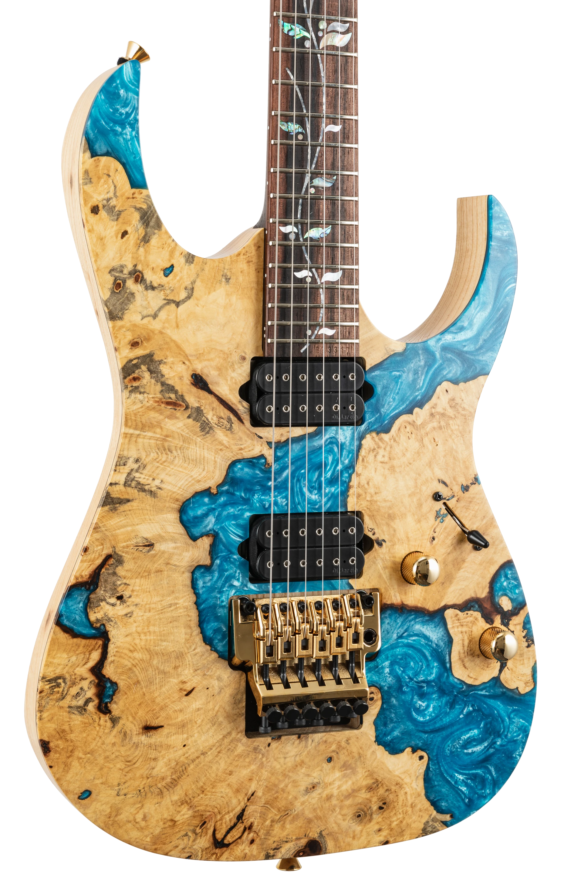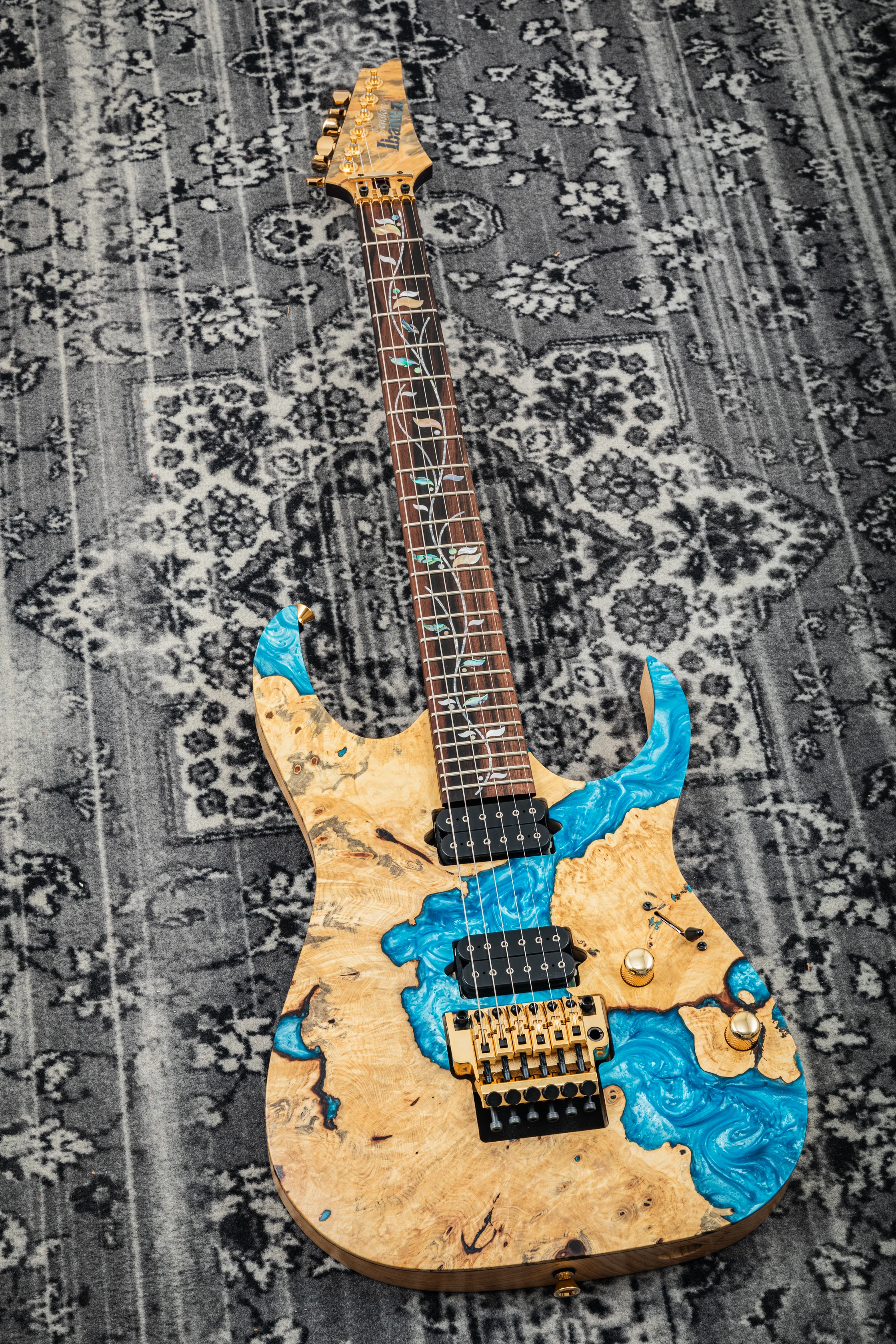 Ibanez J-Custom RG23S01 Limited Edition - buckeye burl & blue resin top