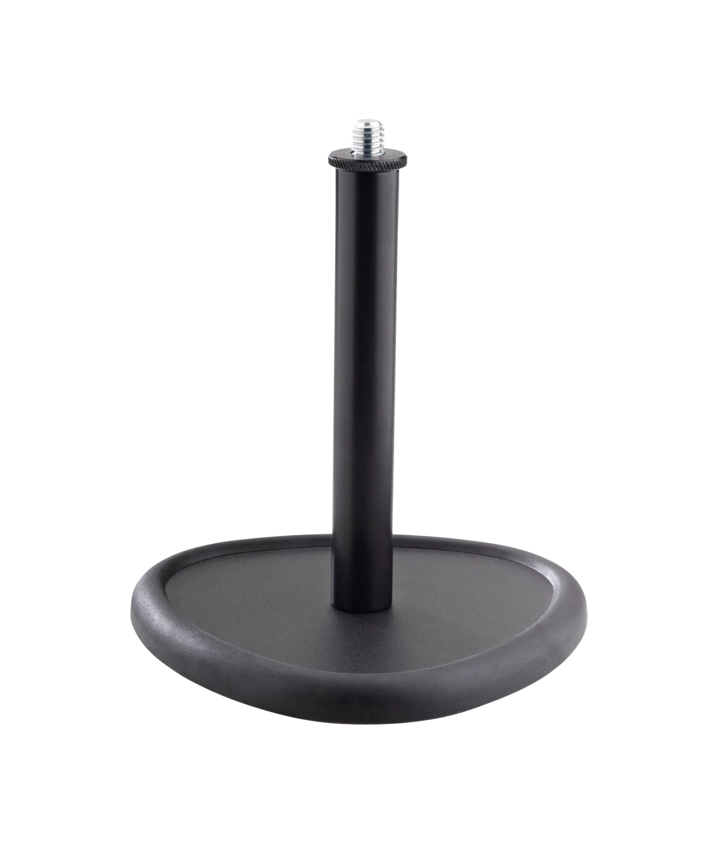 Interessanter Standpunkt! Preisgünstiges Tisch-Mikrofonstativ in attraktiver neuartiger Form, kompakt und praktisch. Das niedrige Stativ mit einem markanten Trilobularsockel (Dreiecksform) hält das Mikrofon solide und zuverlässig in Position. Die umlaufende Trittschalldämmung reduziert dabei unerwünschte Übertragungsgeräusche und sorgt für einen rutschfesten vibrationsfreien Stand.