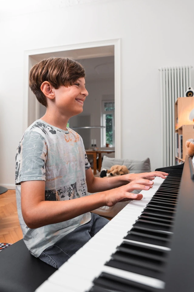 Ein integriertes Metronom hilft beim Training des Rhythmusgefühls, während der eingebaute Recorder es ermöglicht, eigene Performances aufzuzeichnen und Fortschritte hörbar zu machen. Die Lesson-Funktion enthält Stücke aus beliebten Klavierschulen und unterstützt das selbstständige Lernen zu Hause.