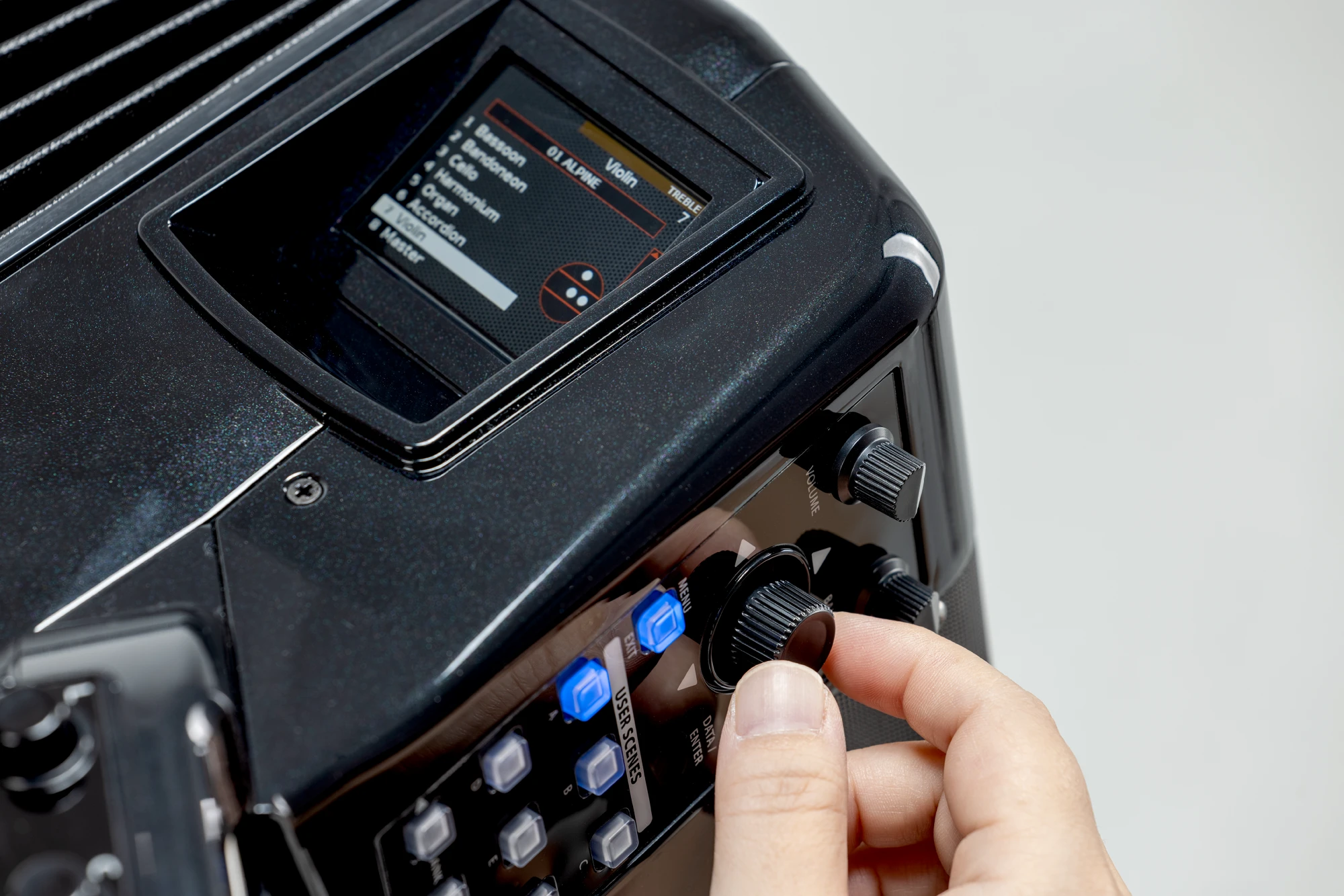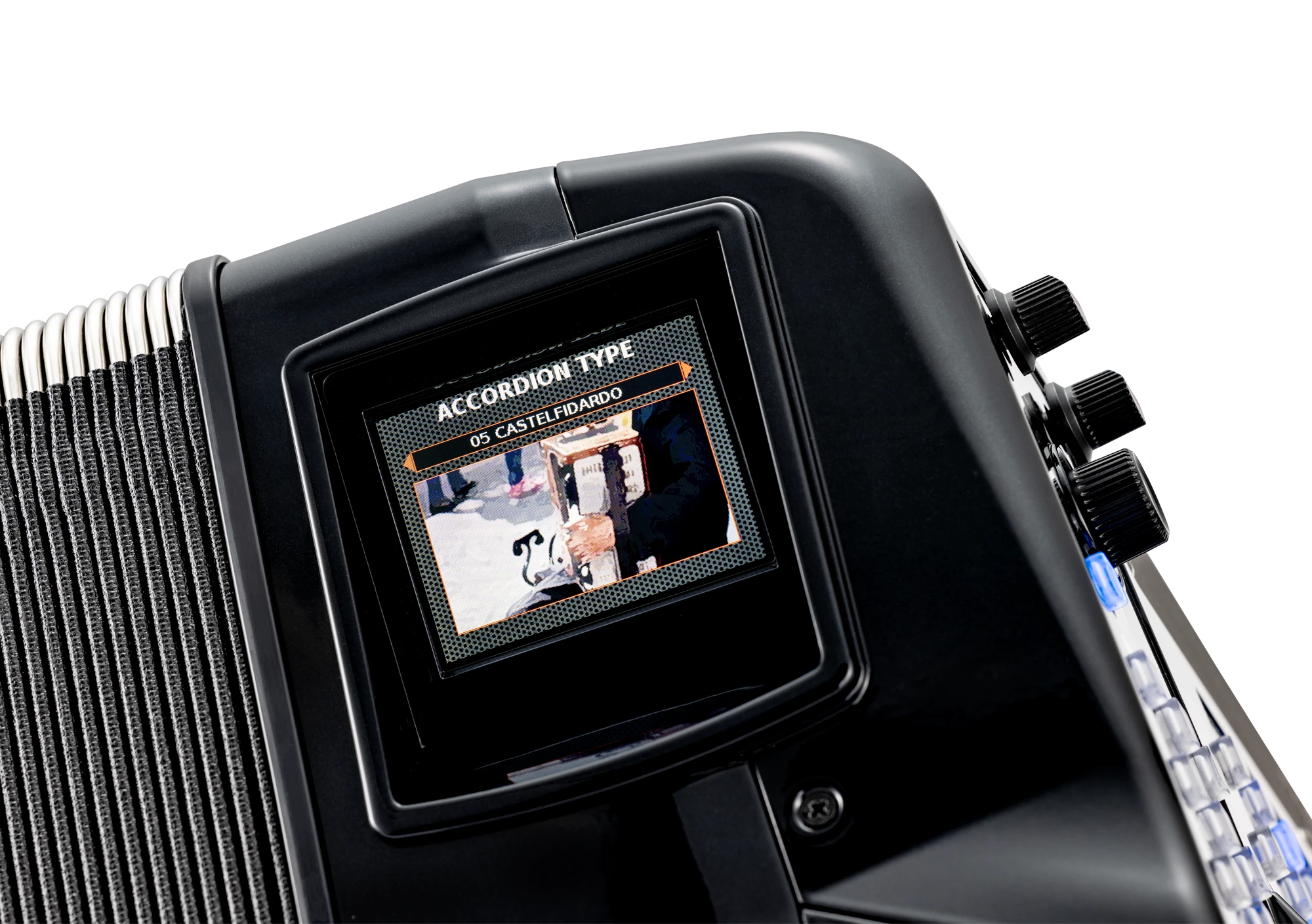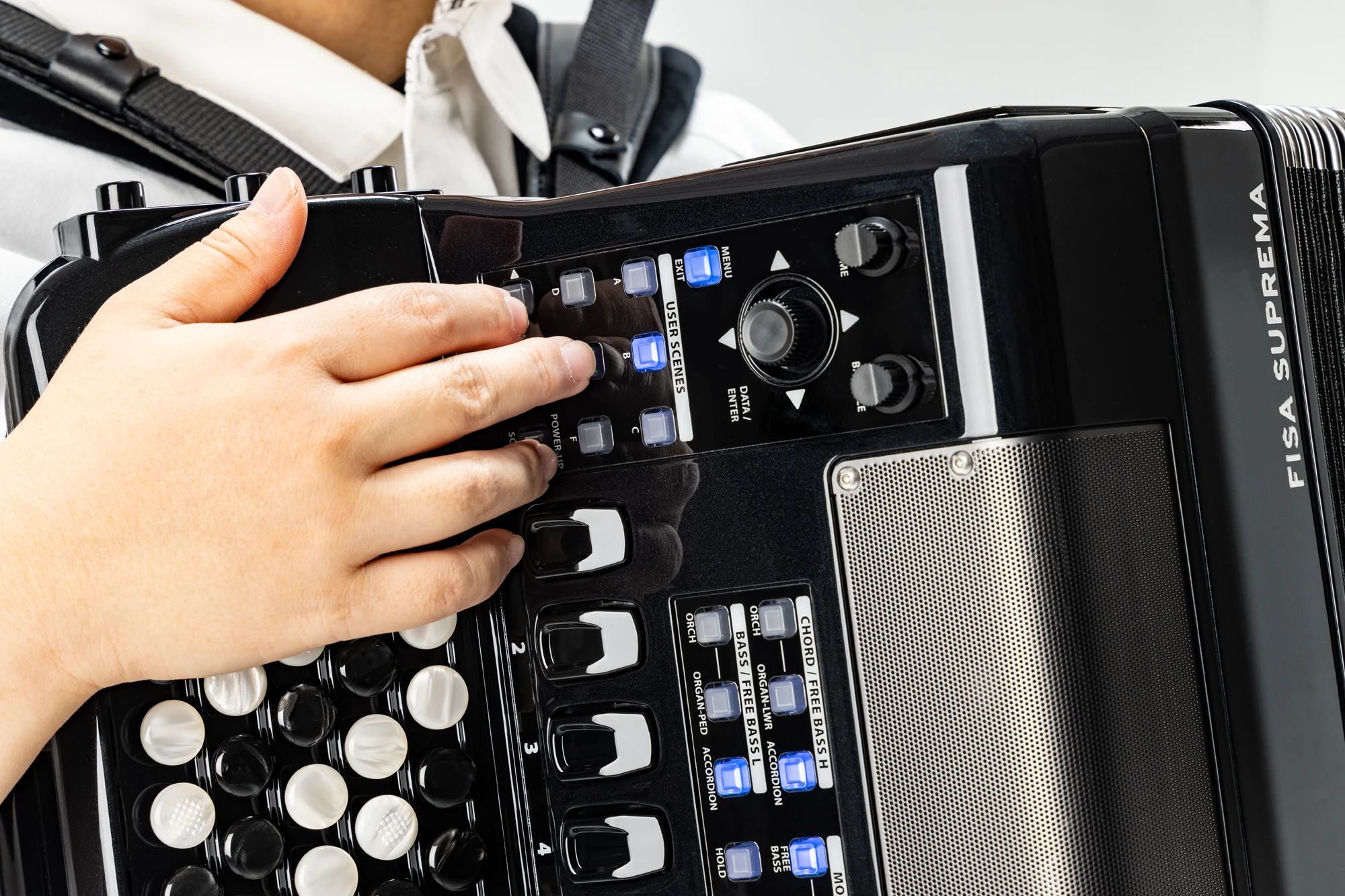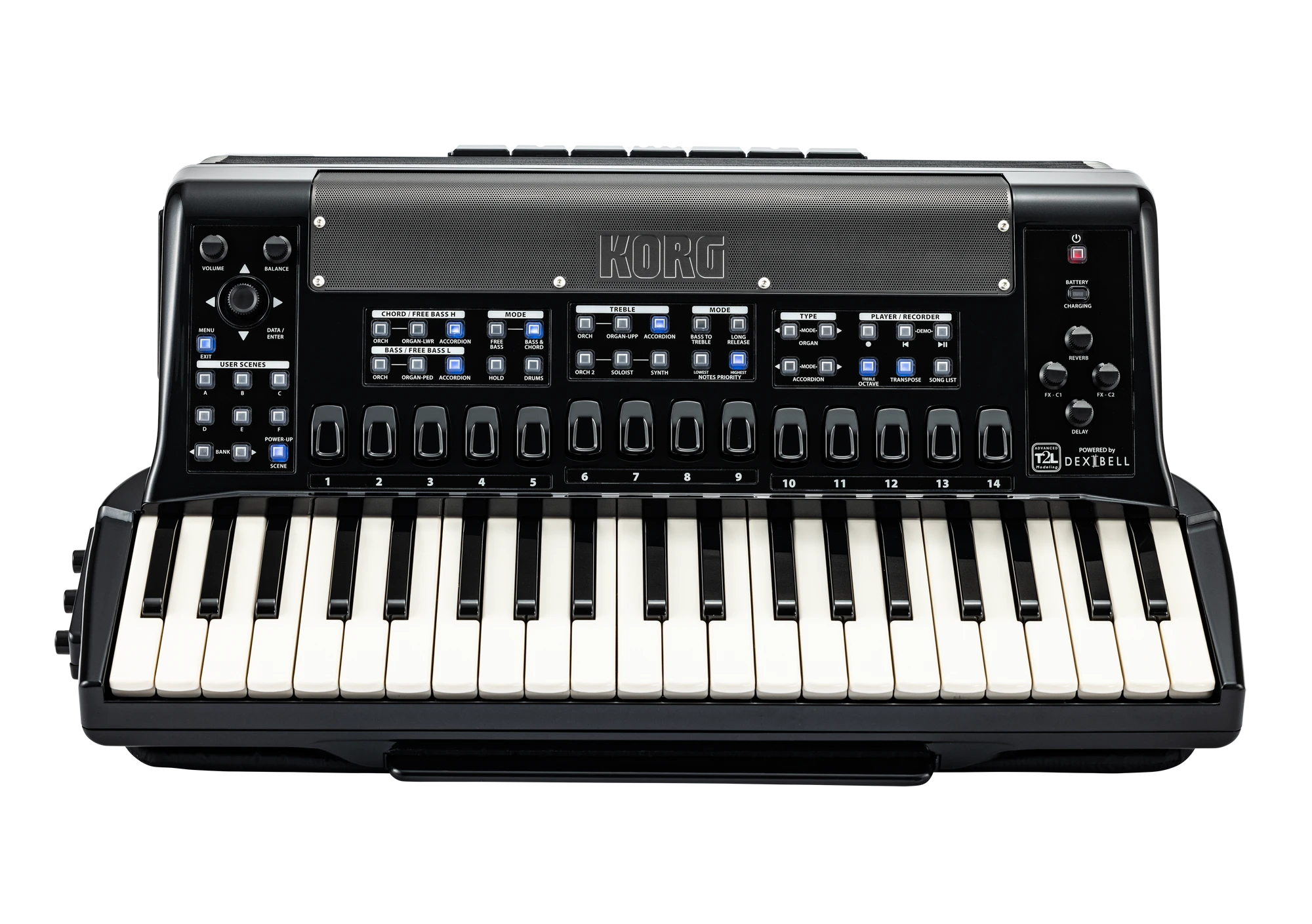 Digitalakkordeon mit 41 anschlagdynamischen Tasten mit Aftertouch und 120 anschlagdynamischen Bässen