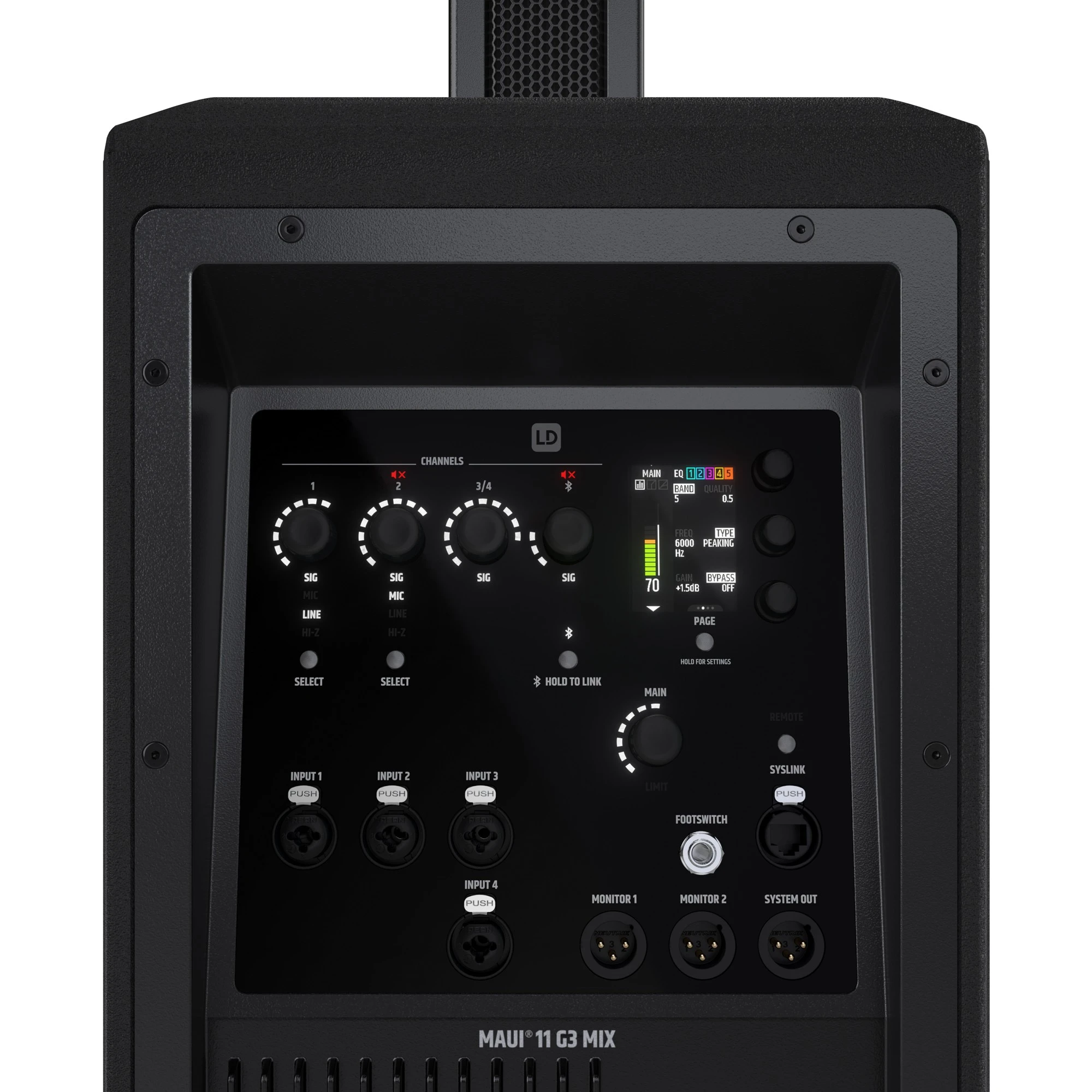 Merkmale: 6 Kanal Mixer, App Control (Easy + Expert Mode), Bluetooth-Audio-Streaming, Cardioid Säule, Footswitch Input, On-Board Effekte + Dynamics, SysLink® (Kaskadieren von 2 Systemen)