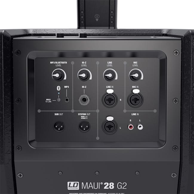 Bedienelemente: Bluetooth Schalter , Hi-Z Level , Line Level , Main Level , Mono-Stereo Schalter , MP3/Bluetooth Level , Power , Sub Level