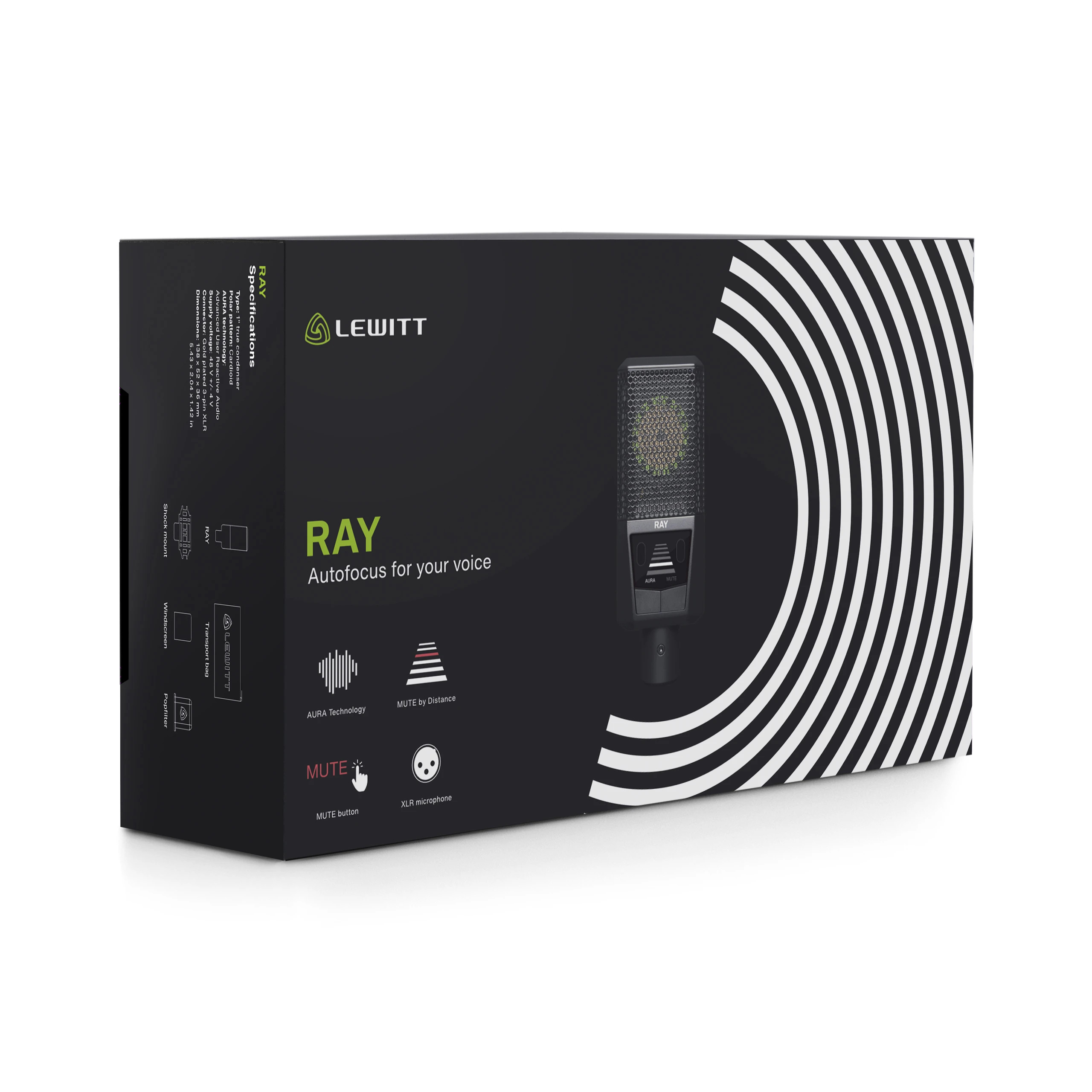 RAY liefert den typischen LEWITT "Record-Ready" Sound, den Artists und renommierte Studios weltweit schätzen. Dieser "Record-Ready" Sound macht das Aufnehmen einfach, weil dein Sound von Anfang poliert und aufgeräumt klingt. Das Einzige, was du eigentlich noch tun musst, ist auf Aufnahme zu drücken.