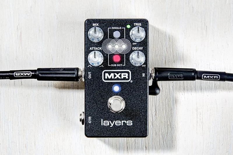 Das MXR Layers Pedal bietet eine übersichtliche Reihe von Reglern, um deine Schichten nach Belieben anzupassen.