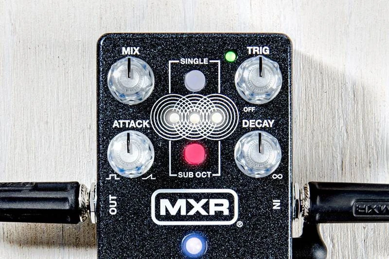 Der Mix-Regler passt den Pegel des Wet-Signals an, also die Lautstärke deiner Schichten. Wie bereits erwähnt, steuert der Trig-Regler die Empfindlichkeit der Auto-Trigger-Funktion des Pedals, sodass du neue Schichten entsprechend der Intensität deiner Anschläge erzeugen kannst. Der Attack-Regler stellt die Einblendzeit jeder Schicht ein, während der bereits erwähnte Decay-Regler die Ausblendzeit bestimmt, wobei er die hohen Frequenzen zuerst abklingen lässt und so die natürlichen Schwingungen einer physikalischen Saite nachahmt.
