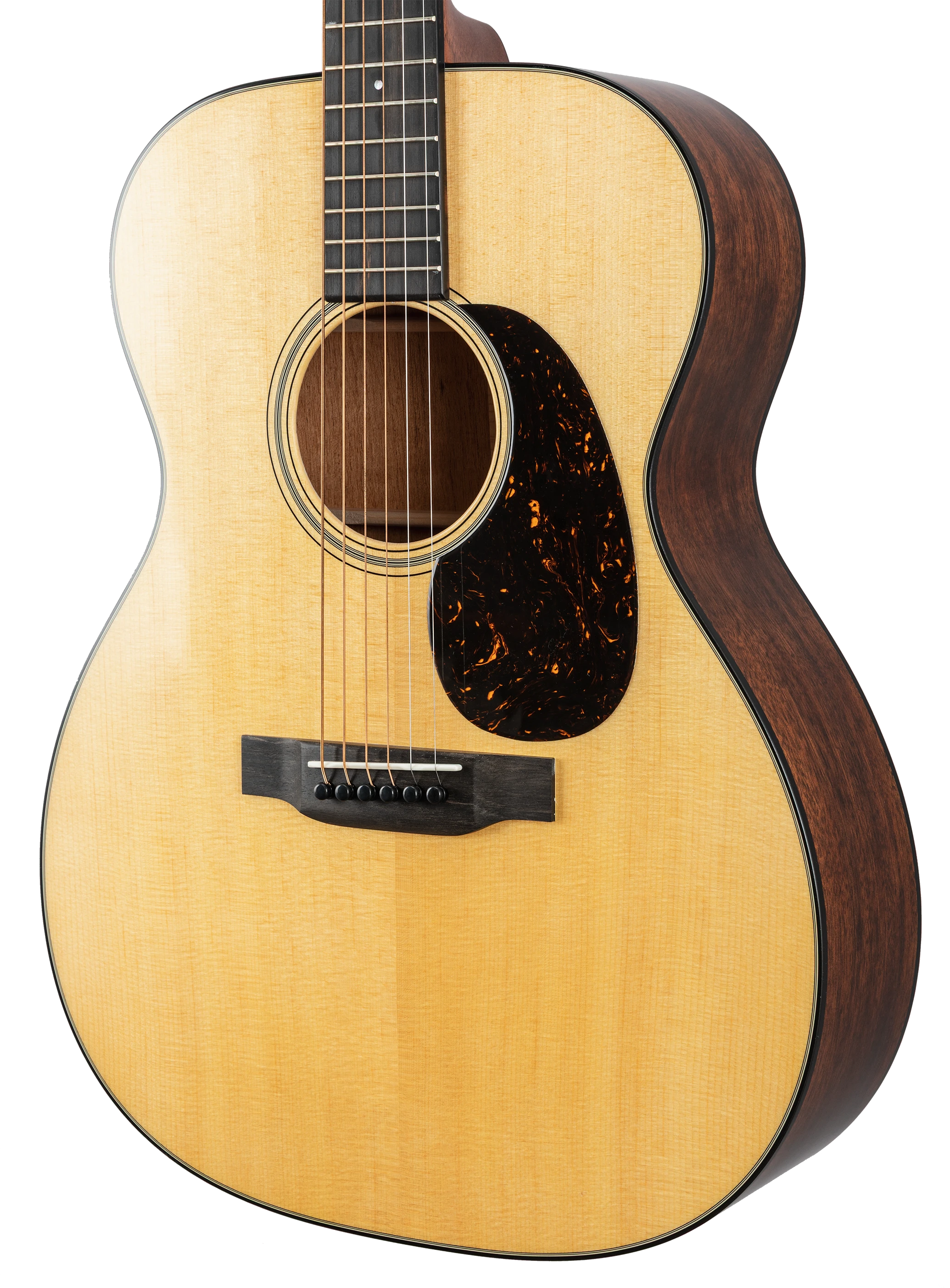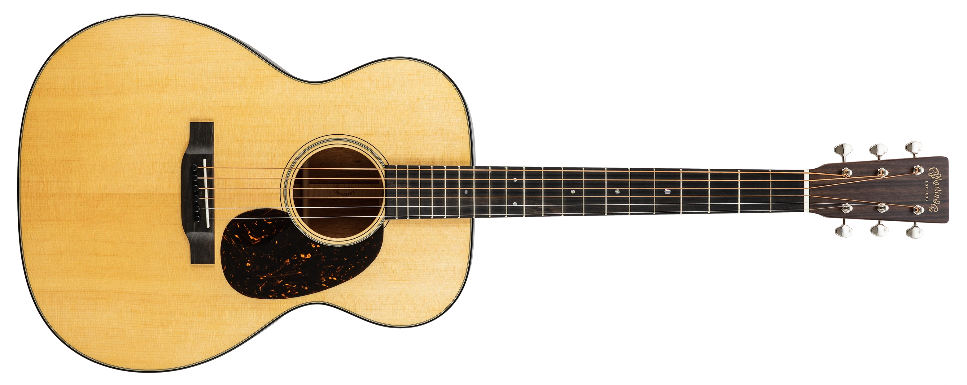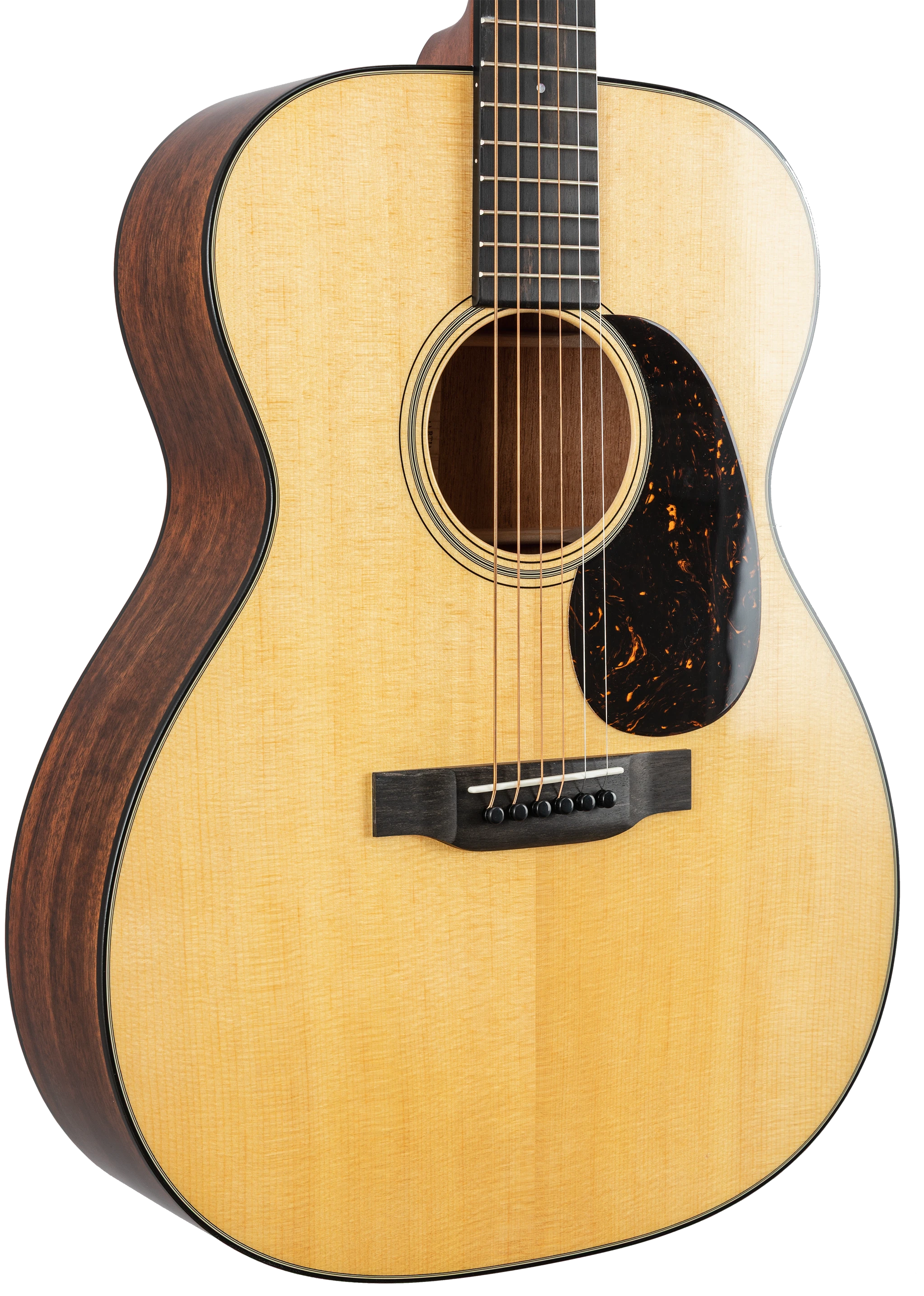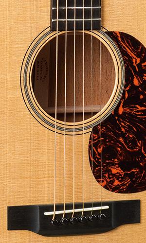 Die Decke der 000-18 besteht aus massivem Sitka-Fichtenholz, das für seinen klaren, dynamischen Ton bekannt ist. Boden und Zargen sind aus massivem Mahagoni gefertigt, was der Gitarre einen warmen und vollen Klangcharakter verleiht. Der Mahagonihals mit einem Ebenholzgriffbrett sorgt für ein angenehmes Spielgefühl, während die kurze Mensur von 24,9 Zoll (63,3 cm) eine leichte Bespielbarkeit und ein sanftes Greifen ermöglicht.