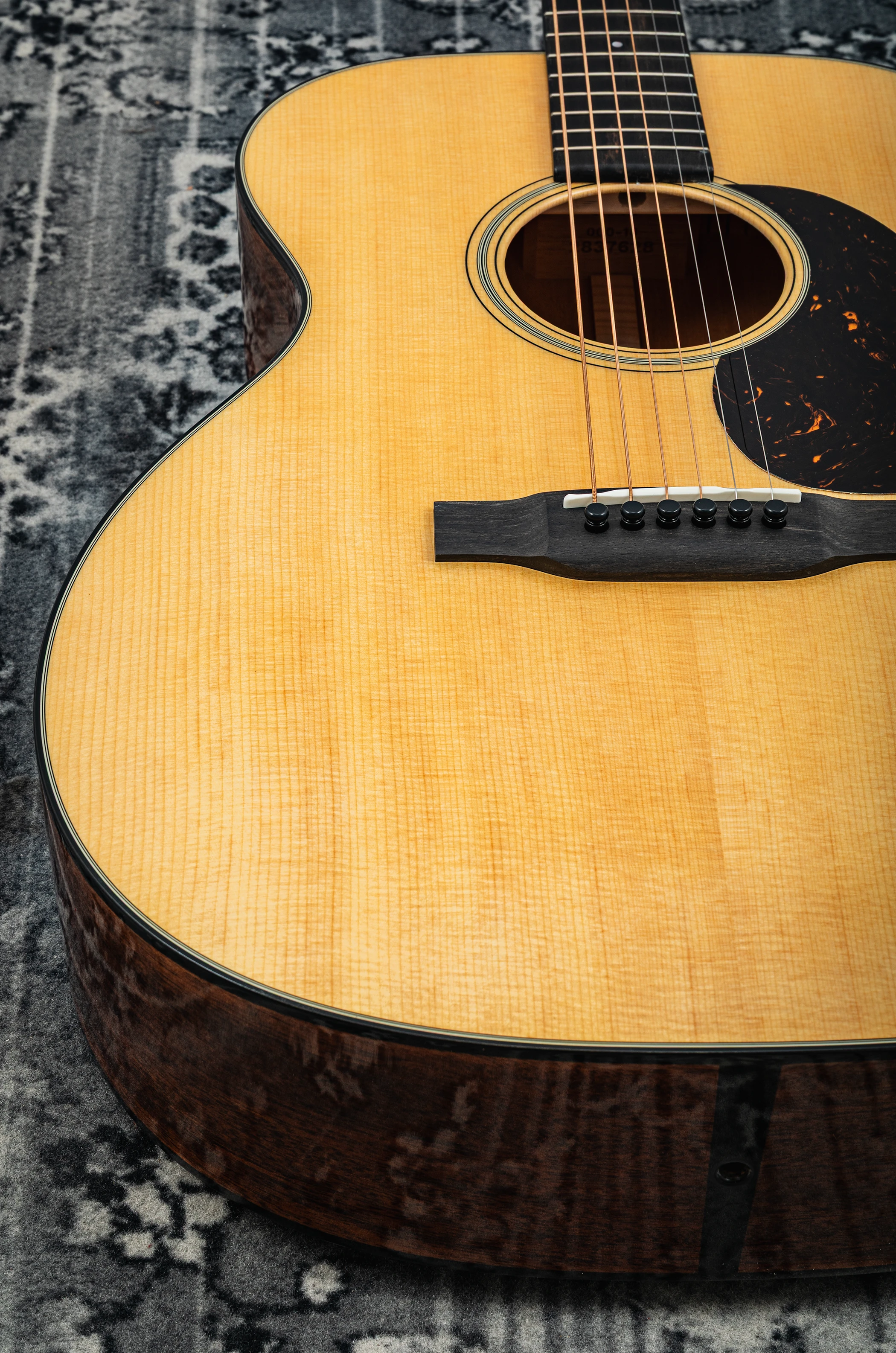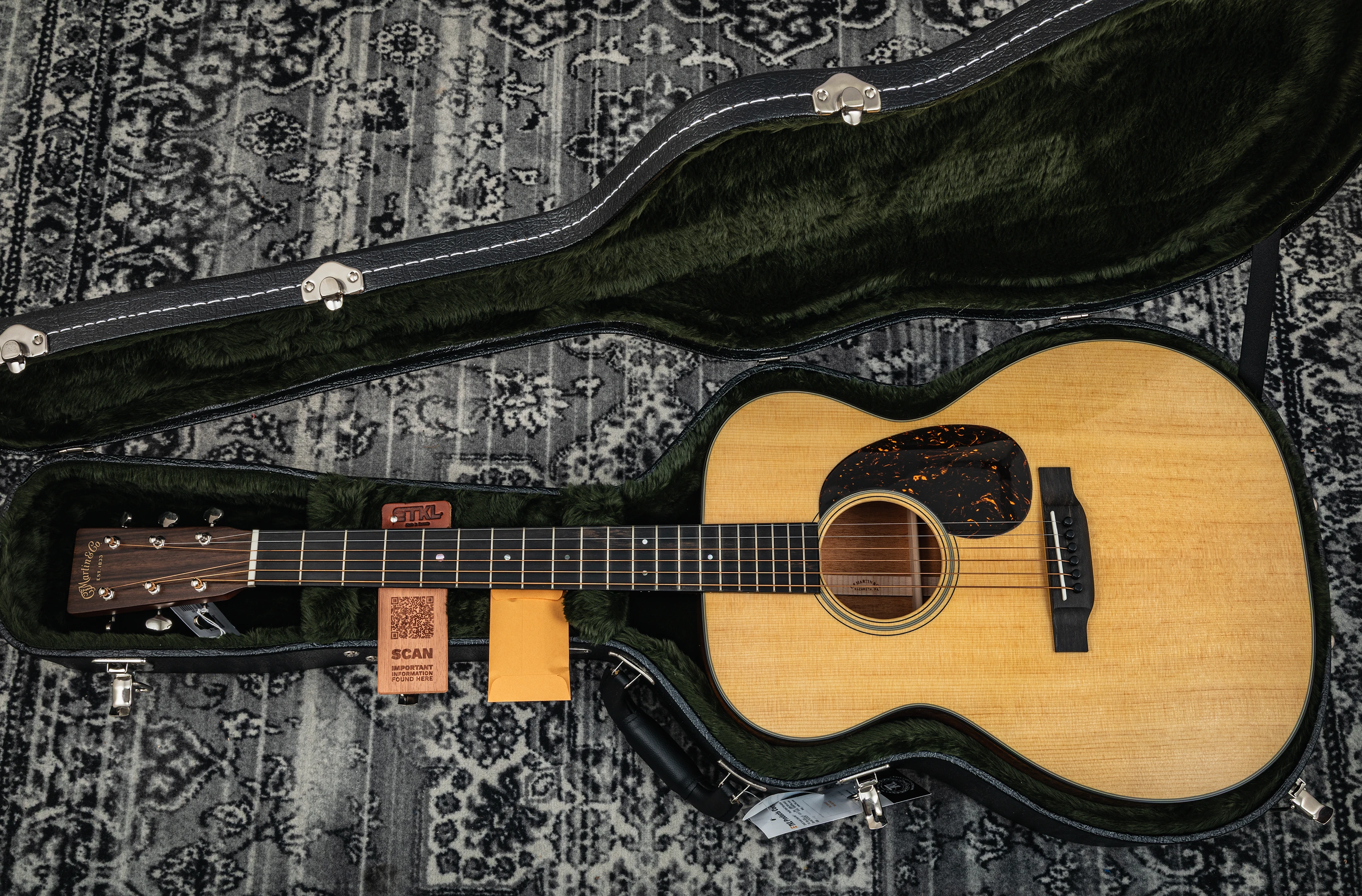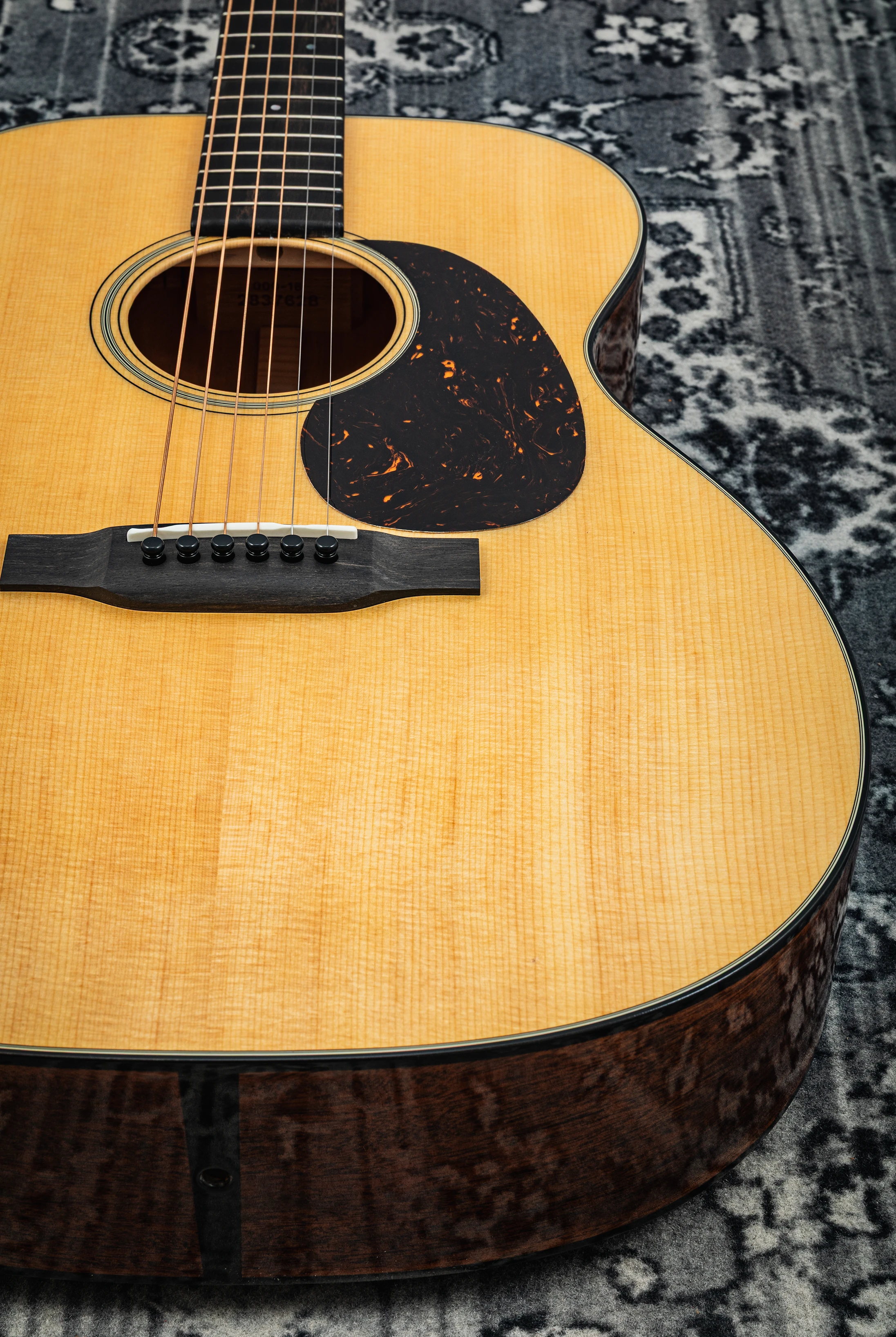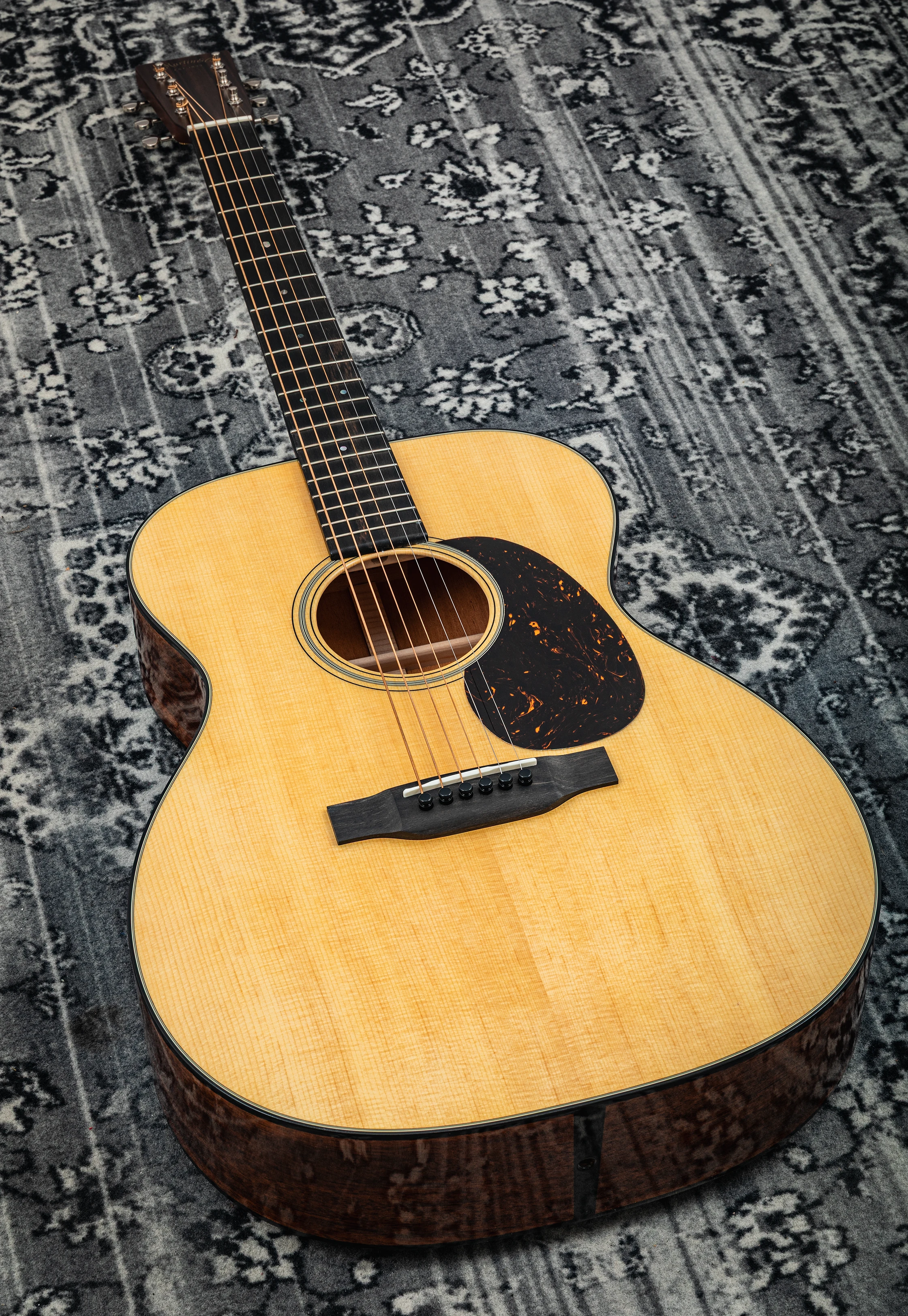 Die Decke der 000-18 besteht aus massivem Sitka-Fichtenholz, das für seinen klaren, dynamischen Ton bekannt ist. Boden und Zargen sind aus massivem Mahagoni gefertigt, was der Gitarre einen warmen und vollen Klangcharakter verleiht. Der Mahagonihals mit einem Ebenholzgriffbrett sorgt für ein angenehmes Spielgefühl, während die kurze Mensur von 24,9 Zoll (63,3 cm) eine leichte Bespielbarkeit und ein sanftes Greifen ermöglicht.