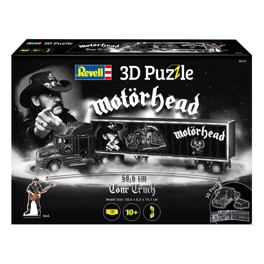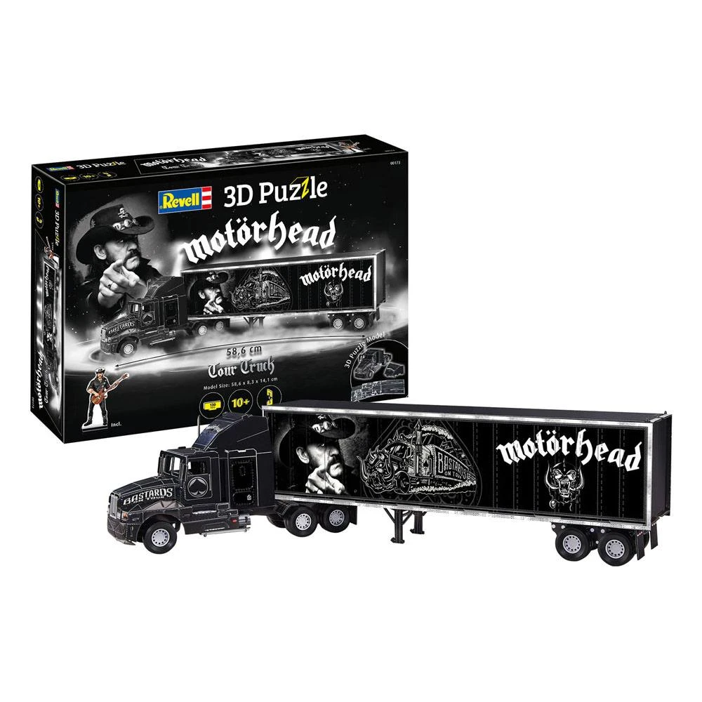 Bastards on Tour: Dieser spektakuläre Truck mit Trailer im Design der schnellsten und lautesten Rockband der Welt ist ein Muss für jeden Fan von Lemmy & Co.. Als 3D Puzzle kann der Truck ganz einfach ohne Kleber und Werkzeug gebaut werden.
