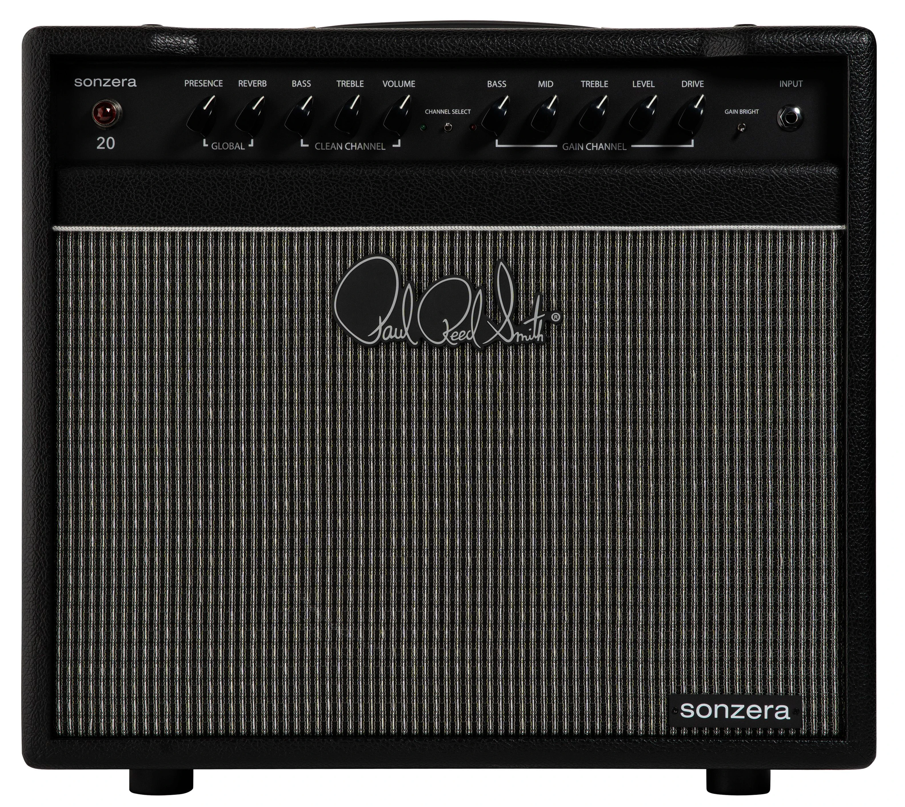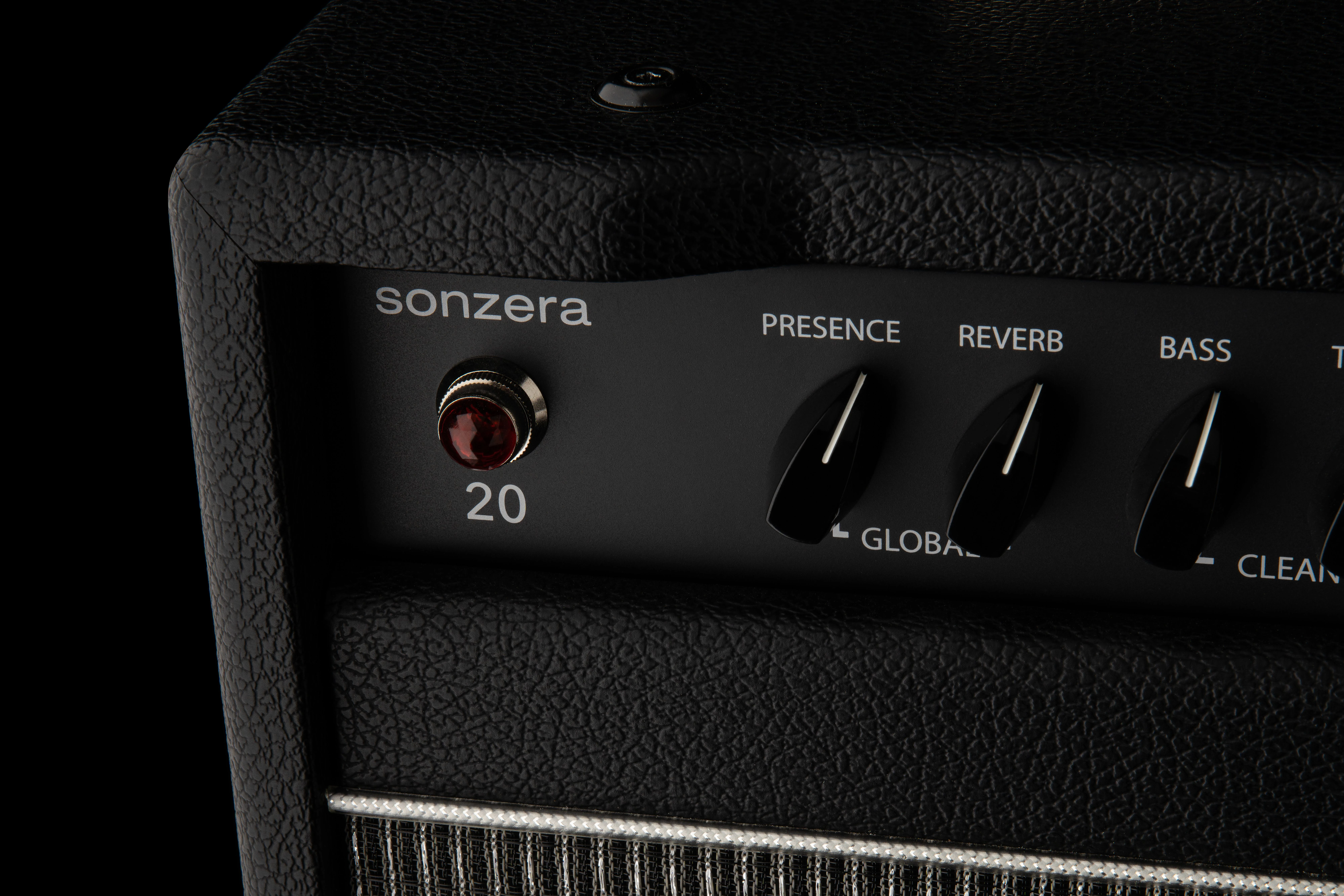 Der Sonzera 20 ist ein 20-Watt-Combo-Verstärker mit moderater Leistung und zwei unabhängig voneinander steuerbaren, per Fußschalter schaltbaren Kanälen, die für maximale Vielseitigkeit ausgelegt sind. Der Clean-Kanal liefert volle, dreidimensionale Sounds, die an amerikanische Verstärker aus der Mitte der 1960er Jahre erinnern. Der Gain-Kanal ist schaltungstechnisch mit dem Clean-Kanal verwandt, so dass er als verstärkter Clean-Kanal eingestellt oder so manipuliert werden kann, dass die Kanäle wie zwei völlig unterschiedliche Verstärker klingen (der Gain-Kanal kann mit den Drive- und Level-Reglern von leichter bis sehr starker Verzerrung eingestellt werden). Der Bright-Schalter des Gain-Kanals wurde sorgfältig darauf abgestimmt, den gewohnten High-End-Snap zu liefern, und ist besonders effektiv bei tiefen Saiten, Hals-Pickup-Einstellungen und Singlecoils, während die Low-End-Antwort des Gain-Kanals voll, dicht und klar ist.