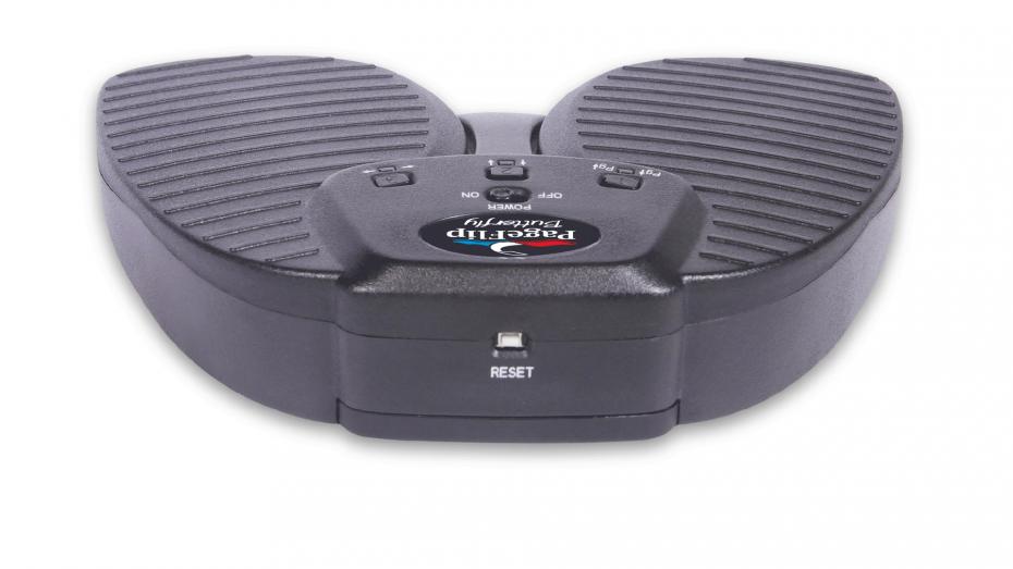 Durch einfaches Antippen der beiden geräuschlos arbeitenden Pedale des PageFlip Butterfly können digitale Inhalte umgedreht oder gescrollt werden. Das PageFlip Butterfly emuliert eine Standard-Tastatur und arbeitet mit jeder Software die Tastatureingaben nutzt, um durch digitale Dateien zu navigieren.