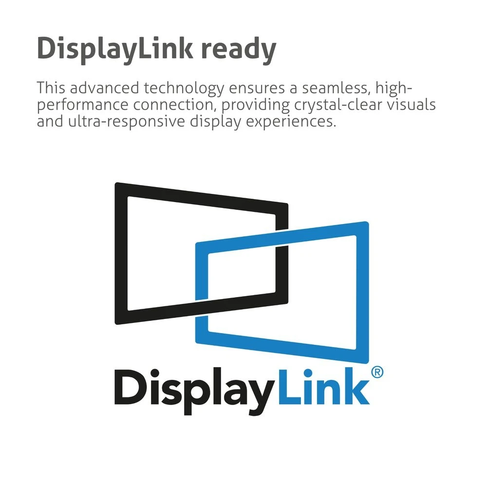 DisplayLink ready: Verabschieden Sie sich von der Kabelkomplexität mit DisplayLink's optimiertem Multi-Monitor Setup. Diese fortschrittliche Technologie sorgt für eine nahtlose, hochleistungsfähige Verbindung, die kristallklare Bilder und extrem reaktionsschnelle Anzeigeerlebnisse bietet.