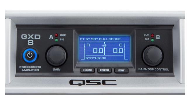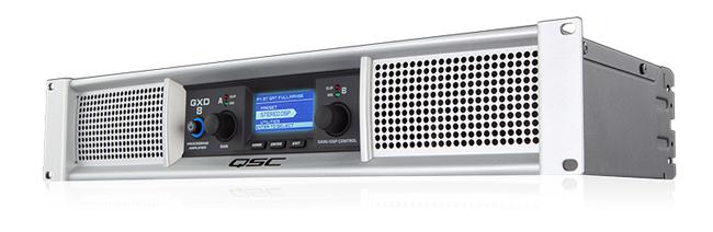 Die Verstärker der GXD Serie zeichnen sich mit einer, von QSC gewohnten, hohen Qualität und Zuverlässigkeit aus und bieten ein sehr gute Preis/Leistungsverhältnis. Die kompakten 19" 2HE Gehäuse der digitalen Endstufen benötigen nur knapp 26cm Einbautiefe und sind mit XLR- und Klinkeneingängen sowie Speakon- und Klemmterminals für den Anschluss der Lautsprecher ausgestattet. Die Kühlung der Elektronik erfolgt über einen temperaturgesteuerten Lüfter. Das Besondere an der GXD Serie ist der integrierte programmierbare Signalprozessor, der mit High- und Lowcut X-Over Filter, 4-Band parametrischen EQ, Allignmentdelay und Limiter pro Kanal eine optimale Abstimmung des angeschlossenen Lautsprechers und eine entsprechende Anpassung der Endstufe ermöglicht. Die Programmierung erfolgt dabei über zwei Encoderräder, drei Taster und einem übersichtlichen und informativen LC-Display. Neben, den von Haus aus abgespeicherten, Presets für übliche Lautsprecherkombinationen lassen sich alle Einstellungen speichern und natürlich auch wieder aufrufen.