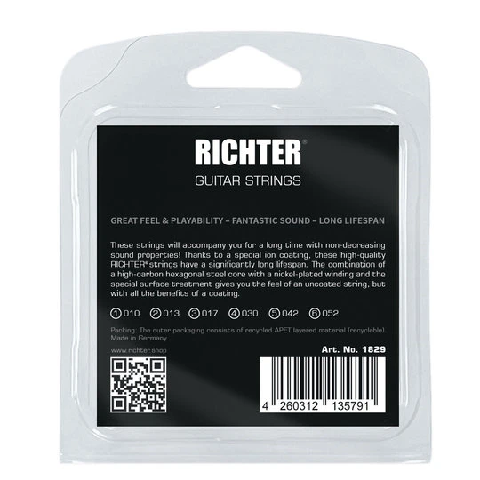 Richter Guitar Strings #1829 10-13-17-30-42-52 Beschichtete Saiten für E-Gitarre lagernd, Lieferzeit lt Versandinfo € 12,95 *) Frage zum Produkt Marke Richter Artikel Nummer G1121439 Versandgewicht 0,10kg Marke Richter Artikel Nummer G1121439 Versandgewicht 0,10kg − + IN DEN WARENKORB