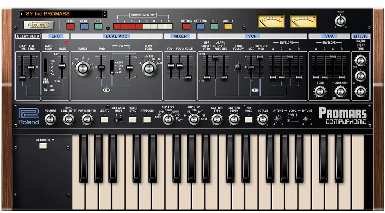 Der 1979 veröffentlichte Bruder des legendären JUPITER-4 ist äußerst selten und bietet betörend schöne, fette und kräftige Sounds, die ihn zu einem extrem gesuchten Synthesizer auf dem Gebrauchtmarkt machen. Das vielseitige PROMARS Plug-In reproduziert das Original bis auf die Schaltungsebene und bietet mächtige Bässe oder Leads, die den unverkennbaren Charakter der Roland-Synthesizer aus dieser Ära verströmen.