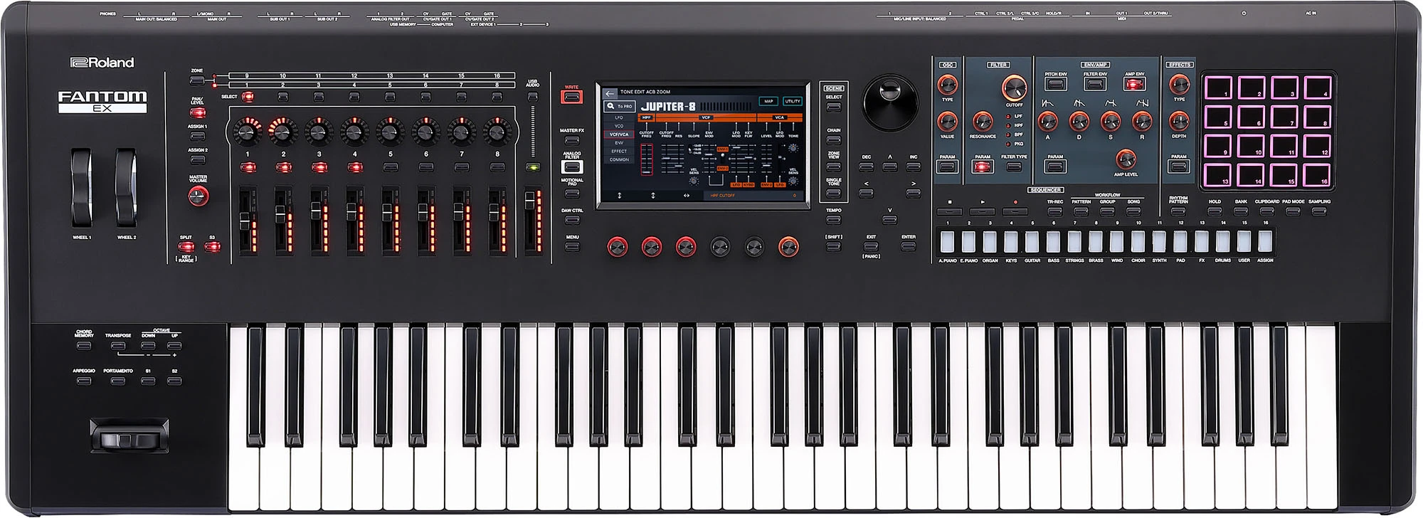 Der FANTOM-EX ist das leistungsstärkste Kreativ-Keyboard der Welt. Das neueste Modell der FANTOM Reihe erweitert die führende Roland Synthesizer-Plattform um innovative neue Möglichkeiten, darunter den Einsatz mehrerer Soundengines, umfangreiche Kompositions- und Performance-Tools sowie eine außergewöhnliche Spielbarkeit.