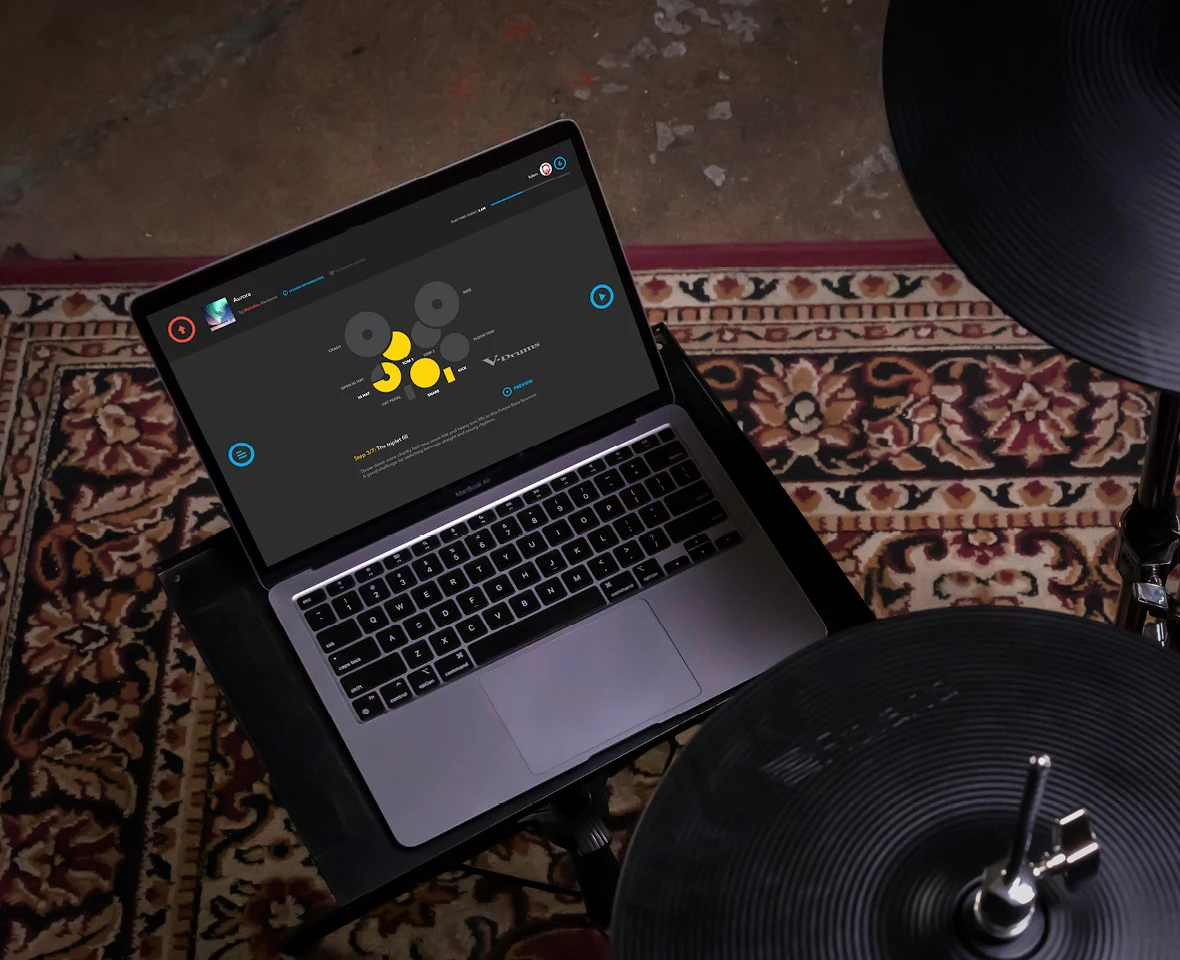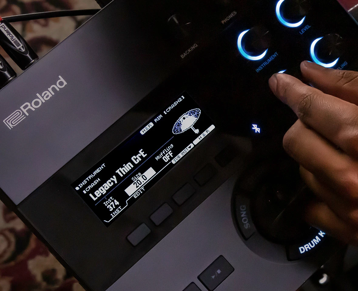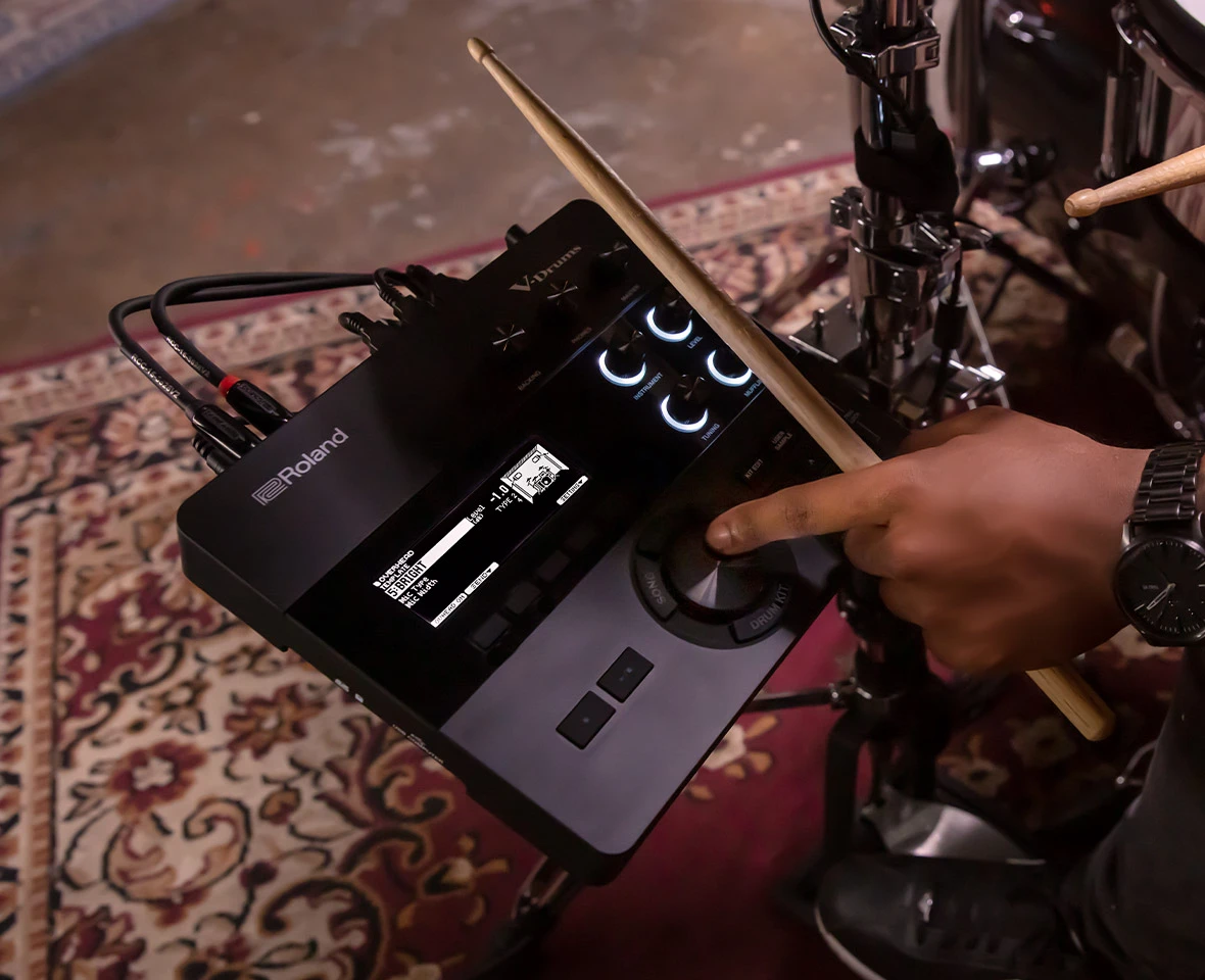 Detailauflistung Digitale Trigger für Hihat, Snare und Ride für ein realistisches und hochauflösendes Speilgefühl