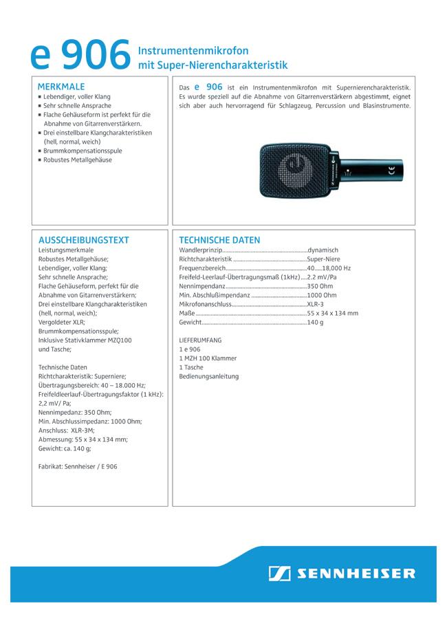 Sennheiser E-906 Dynamisches Mikrofon Hersteller-Infos anzeigen Hersteller Name:Sennheiser electronic SE & Co. KGAdresse:Am Labor 1, 30900 Wedemark, GermanyEmail:contact@sennheiser.comWebseite:https://www.sennheiser.comEU-Hersteller:Ja nicht lagernd, Lieferzeit lt Versandinfo € 179,00 *) Frage zum Produkt Marke Sennheiser Artikel Nummer T2024945 Versandgewicht 0,50kg Marke Sennheiser Artikel Nummer T2024945 Versandgewicht 0,50kg − + IN DEN WARENKORB