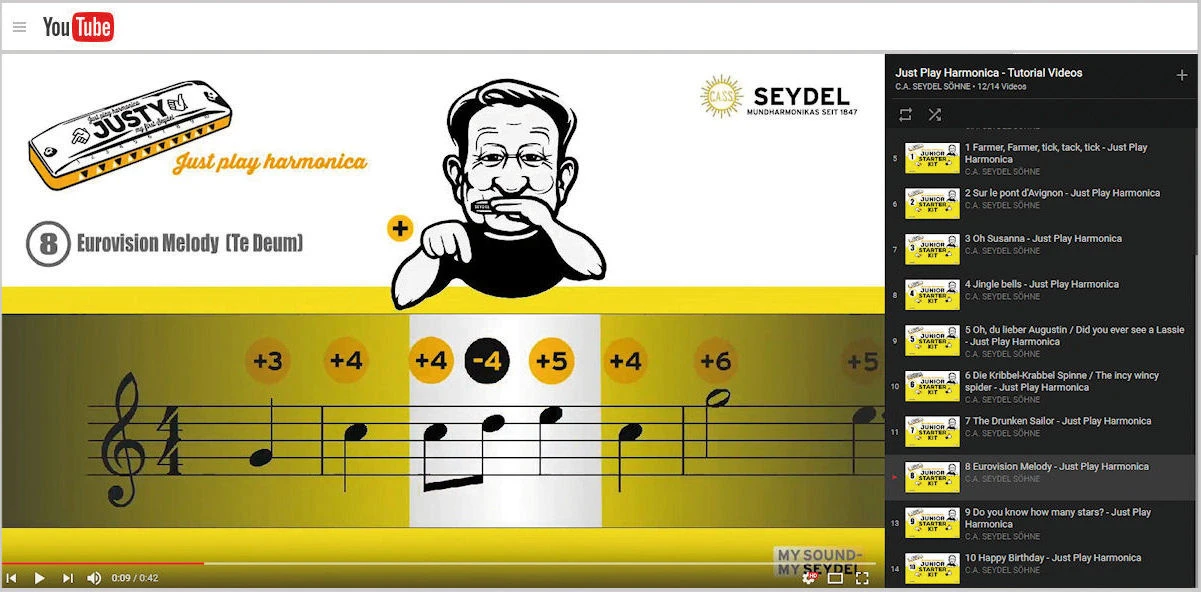 Mit den Videos (oder der Multimedia-Software) kannst Du überall üben und lernst spielend einfach zehn tolle Lieder – passend zu jedem Anlass! Eine hochwertige "JUSTY"-Mundharmonika in C-Dur ist im Junior Starter Kit enthalten!