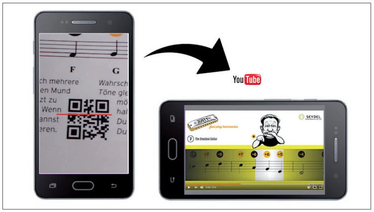 Scanne die QR-Codes im Heft mit Deinem Handy - für jedes der zehn Lieder gibt es ein Video, dass sich automatisch öffnet - so einfach geht das!