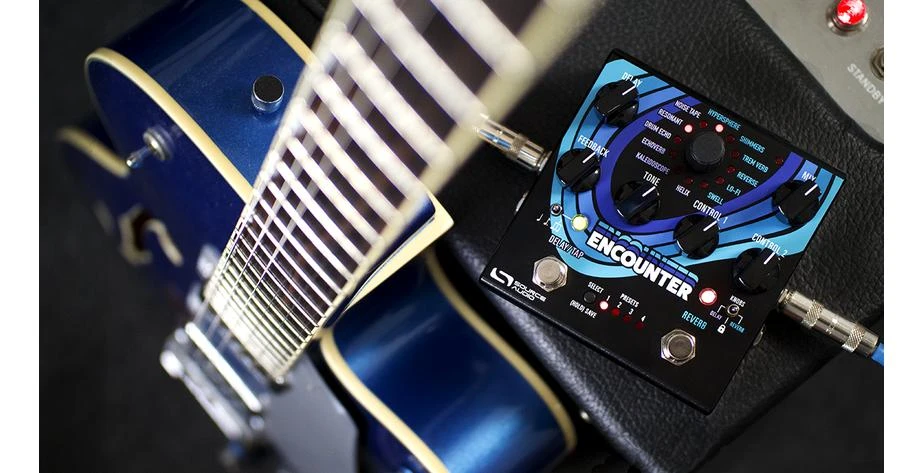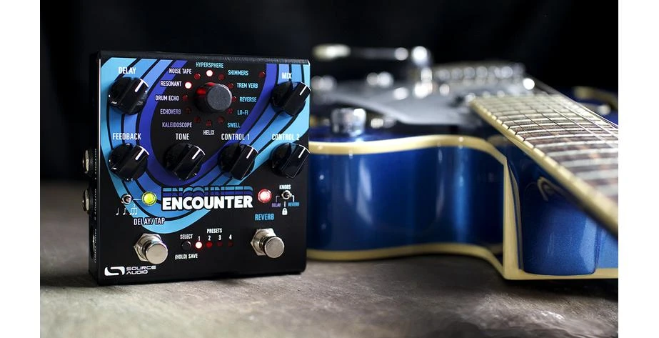 Das Encounter ist mehr als nur eine Kombination aus Delay- und Reverb-Effektpedal. Dies ist ein voll ausgestattetes Effektgerät für atmosphärische Entdeckungsreisen, das sorgfältig entwickelt wurde, um komplexe himmlische Klänge und eindringliche Klanglandschaften zu erforschen. Das Pedal verfügt über eine Bedienoberfläche, die dem mittlerweile legendären Collider Delay + Reverb von Source Audio ähnelt. Während sich das Collider Pedal jedoch auf klassische Sounds konzentrierte, bietet das Encounter eine breit gefächerte Sammlung von außergewöhnlichen und noch nie dagewesenen Delay- und Reverb-Effekten. Alle der sechs Delay- und sechs Reverb-Engines können einzeln oder paarweise (einschließlich Dual-Delay- oder Dual-Reverb-Kombinationen) mit voller MIDI-Funktionalität und Stereo-Ein- und Ausgängen verwendet werden. Zu den Routing-Optionen gehören Reihenschaltung, Parallelschaltung oder Split-Stereo.