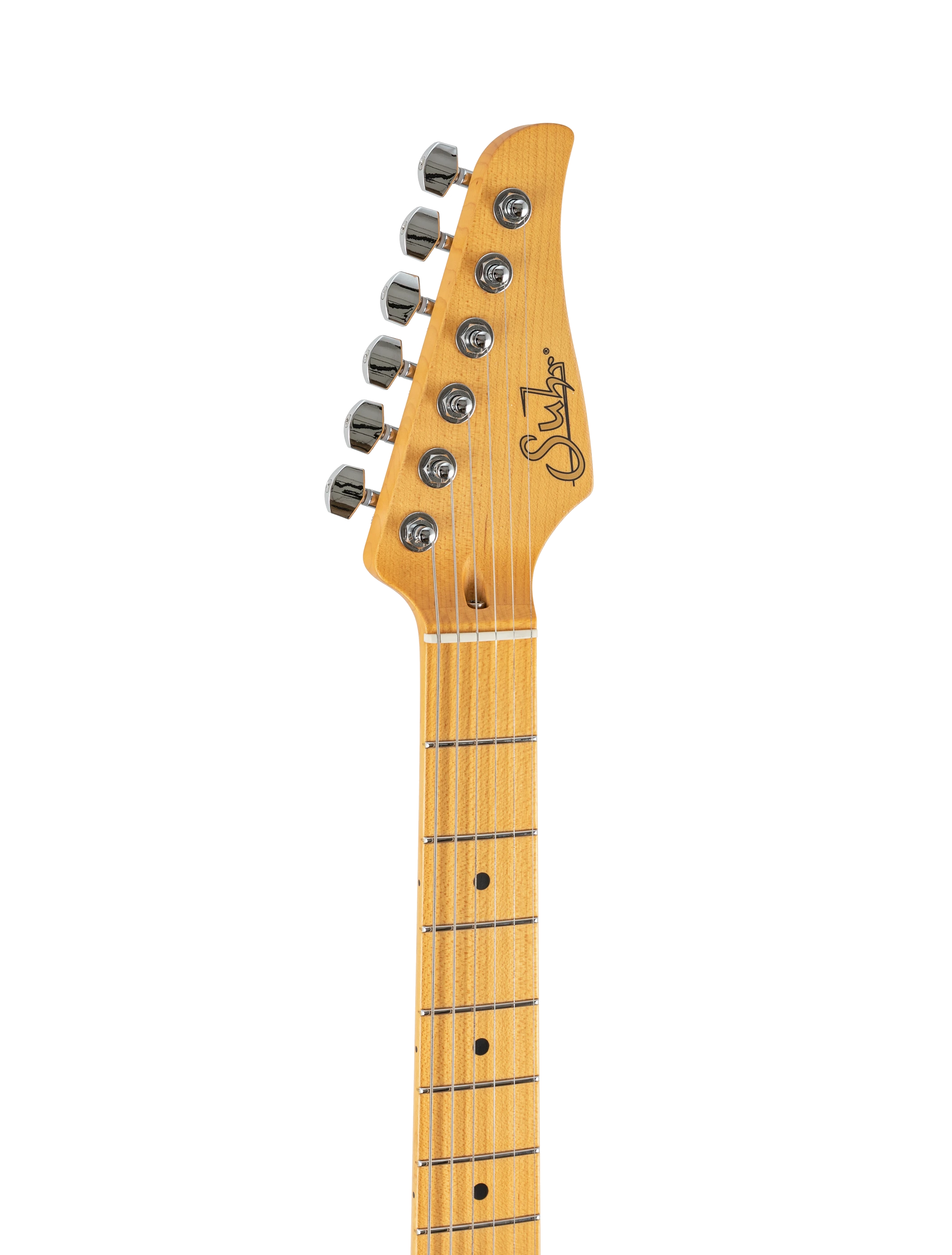 Detailauflistung getönter Ahorn Hals