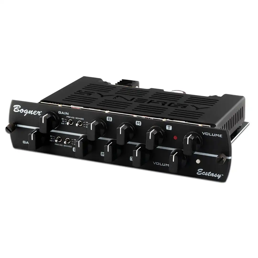 Der Ecstasy ist so beliebt, dass die Spieler von Synergy verlangten, mit Reinhold zusammenzuarbeiten, um ihn zu diesem Vorverstärkermodul zu destillieren, an dem zwei Jahre gearbeitet wurde. Der Blue-Kanal - basierend auf dem Rock'n'Roll-erprobten zweiten Kanal des Ecstasy - bietet verschiedene Gain-Stufen, die in Kombination mit zwei 3-Positionen Pre-EQ- und Schizo-Schaltern alles von Blues bis Hardrock abdecken. Schalten Sie auf den Red-Kanal um, und das gleiche Regler-Layout bringt Schicht um Schicht harmonisch reichhaltigen Gain, perfekt für weit offene Leads und Metal. Mit dem Synergy Ecstasy Modul können Sie jetzt alle harmonischen Obertöne, den hohen Gain, den Plexi-Style Punch und die Notendefinition des Originalverstärkers zu einem Bruchteil des Preises erhalten.