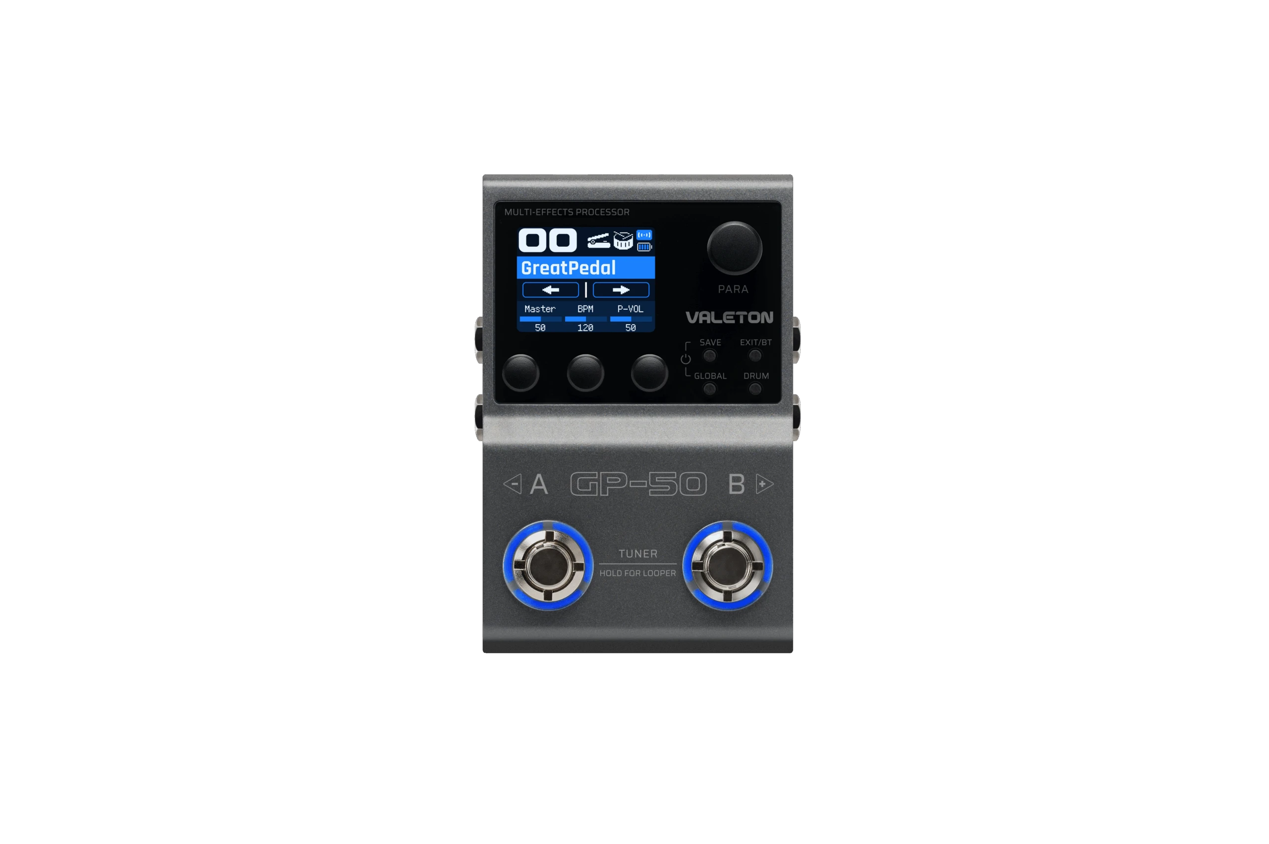 In dem unermüdlichen Streben nach dem perfekten Gleichgewicht zwischen Klangqualität und Portabilität knüpft Valeton an das klassische Design des GP-5 Super Compact Multi-Effects Pedals an und eröffnet mit dem GP-50 ein neues Kapitel umfassender Funktionalität und professioneller Features. Das GP-50 vereint die Vorteile eines kompakten Multieffektpedals mit denen eines leistungsstarken Multieffektprozessors.